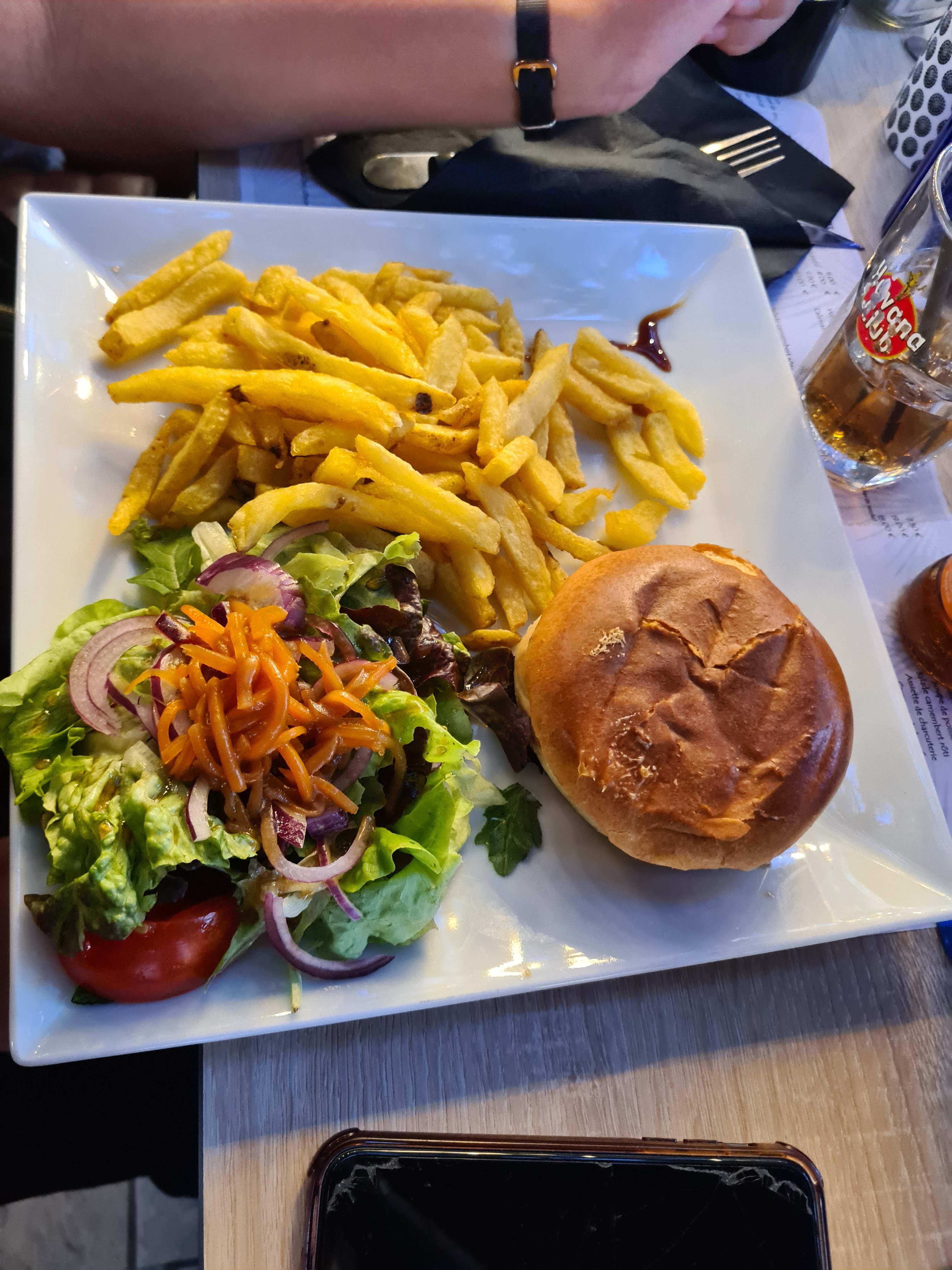 Prix raisonnable, bon accueil et personnel sympathique, les burgers xll sont pas mal chargés et bon ! Pichet de vin abordable et plutôt bon. Juste pas beaucoup de dessert sur la carte.