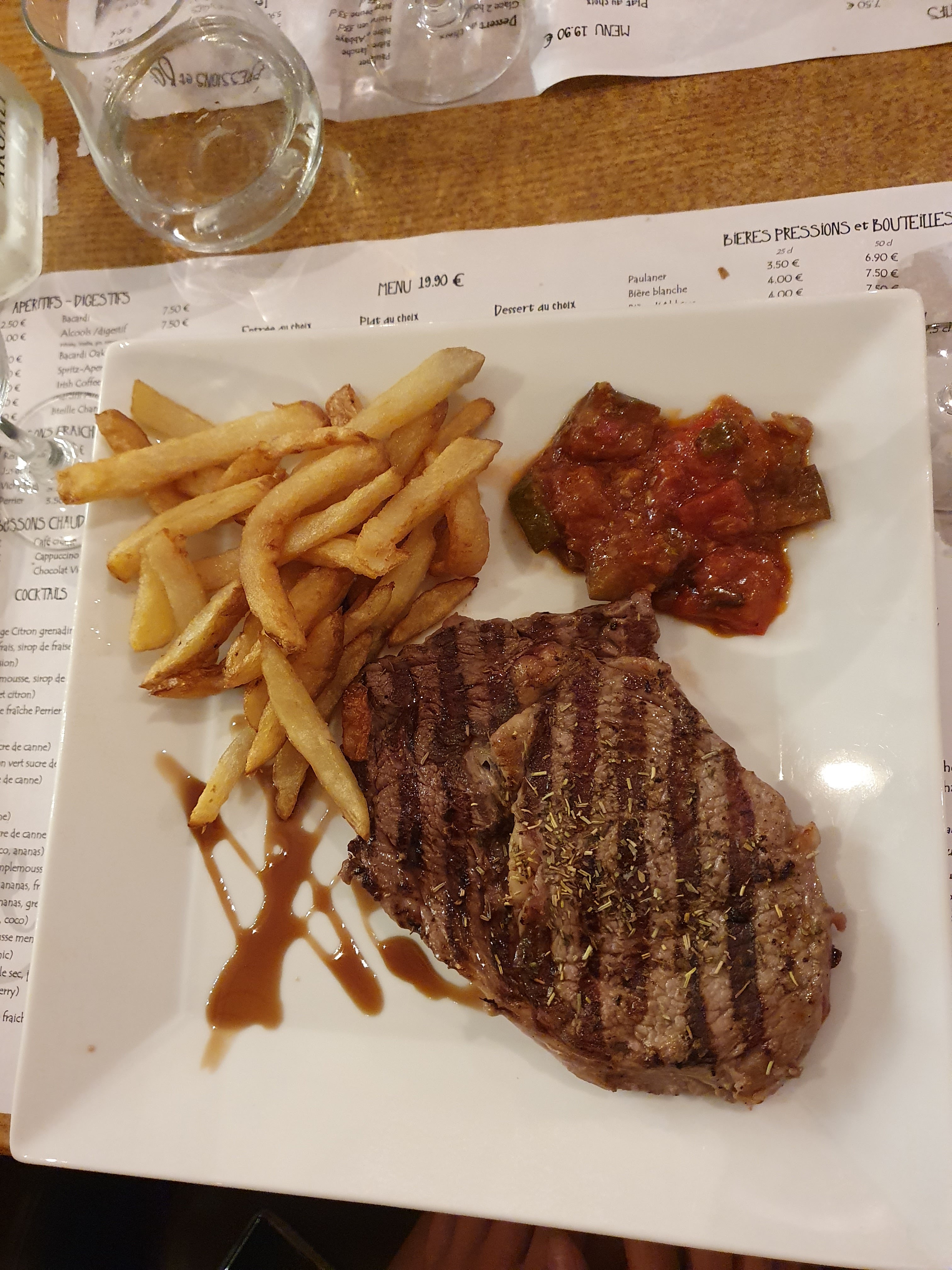 Serveur et cadre sympathiques, repas ni excellent ni mauvais : juste moyen. Nous avons pris le menu : la soupe de poisson était un peu insipide, l'entrecôte commandée saignante est arrivée à point. Les frites (fraîches) sont bonnes !
