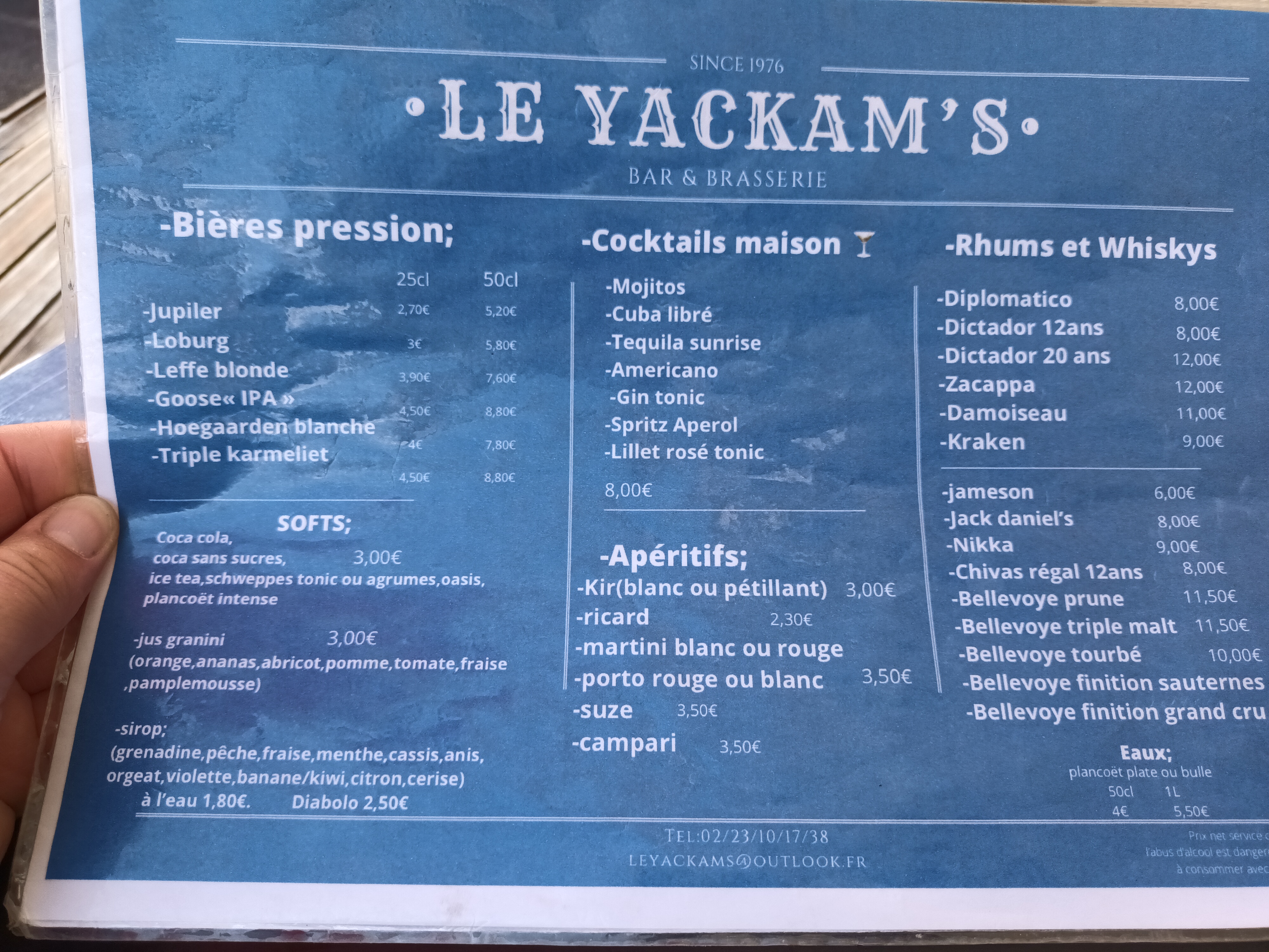 Testé le bar uniquement : Accueil et service tout à fait correct, tarifs normaux, décoration correcte, terrasse agréable et couverte. Les nostalgiques du Yackam's ne retrouverons toutefois plus l'ambiance irlandaise de cet ex-pub. Cuisine snack testée. Également très correcte avec un service rapide. Les portions sont généreuse. Tarifs dans la norme.