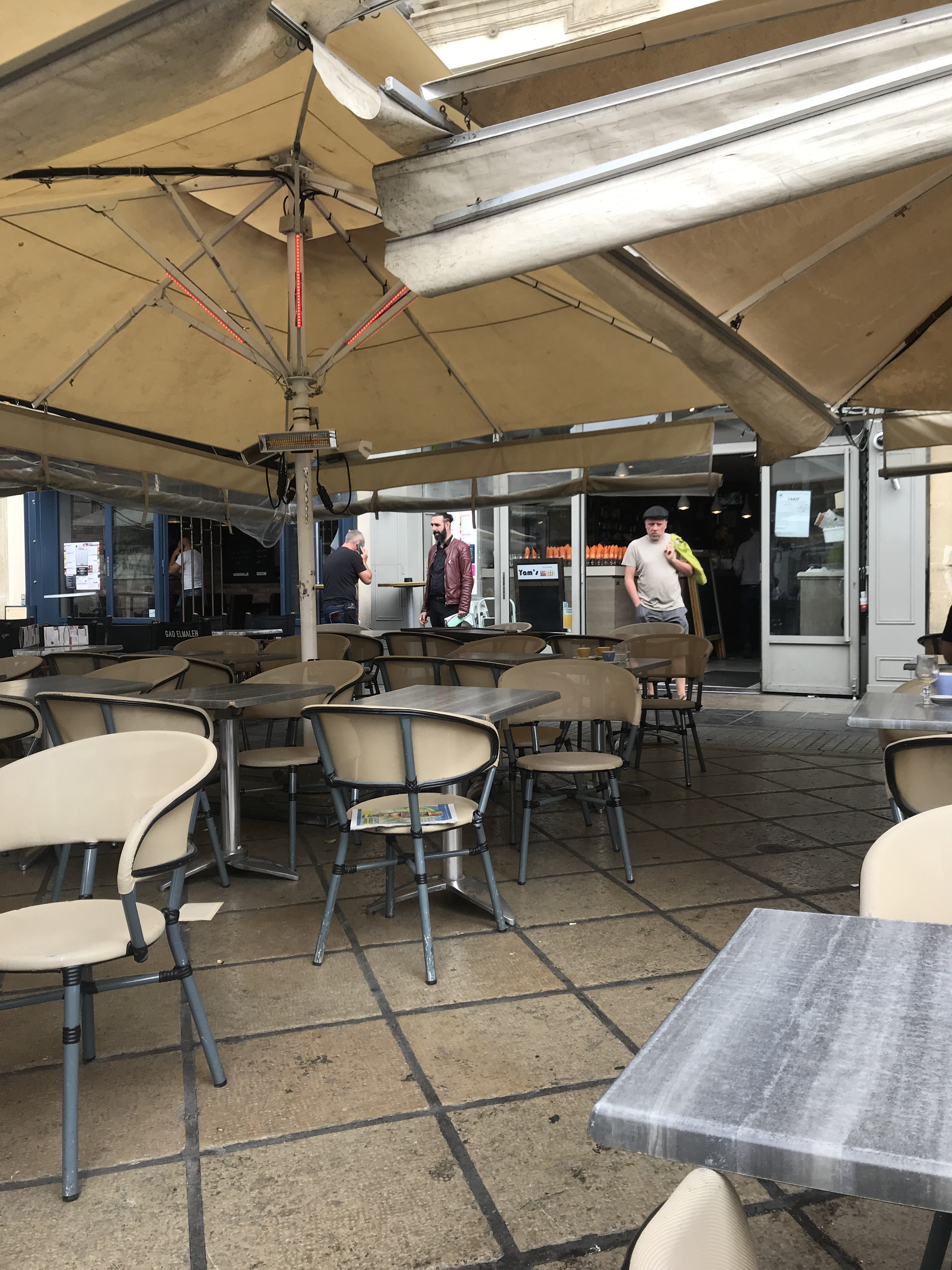 Terrasse envahie par les pigeons...qui viennent sur les tables egalement ....Service tres tres lent meme quand il y a peu de monde... Ce n est que mon avis mais la majorite des bars de cette place n en ont que faire de la clientele...