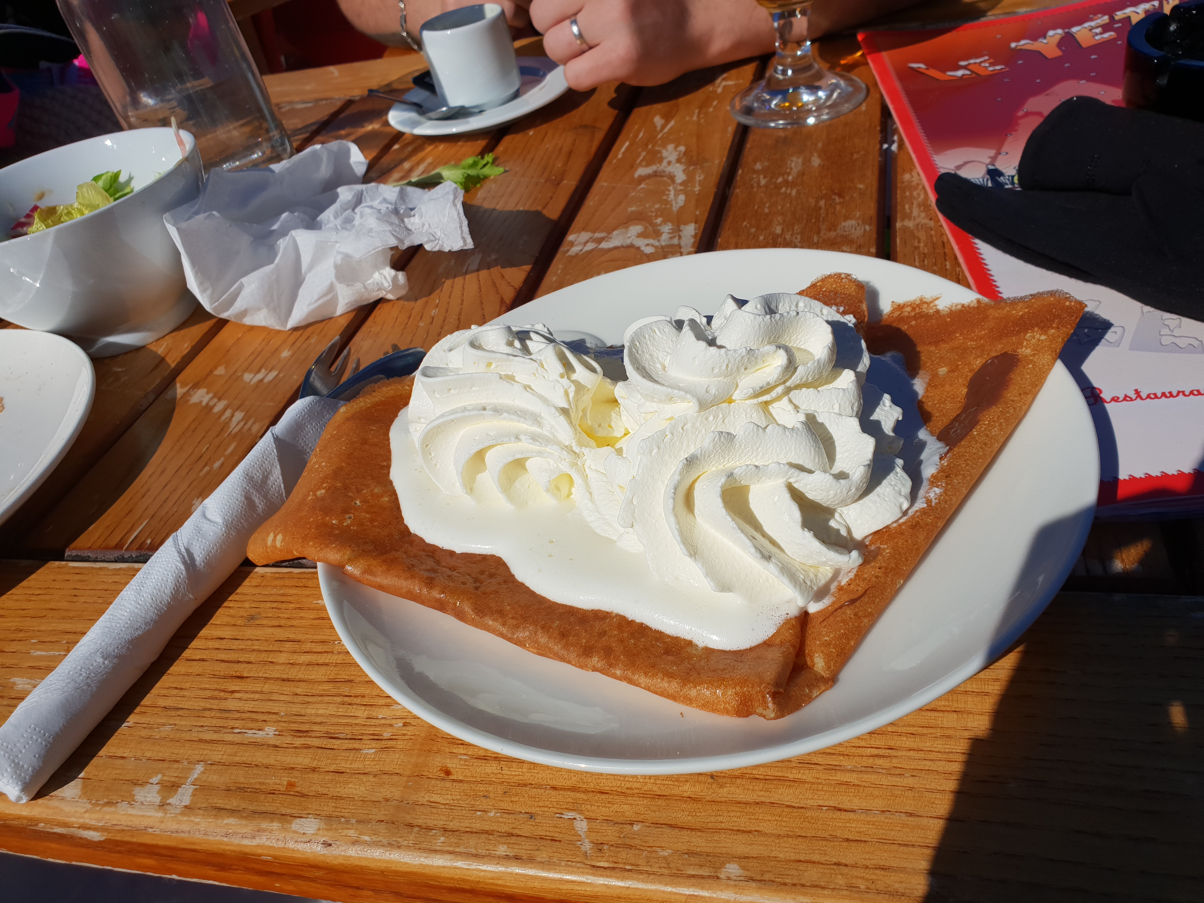 Très bon accueil, crêpes bien fournies, prix raisonnable à 1800, grande terrasse au soleil.