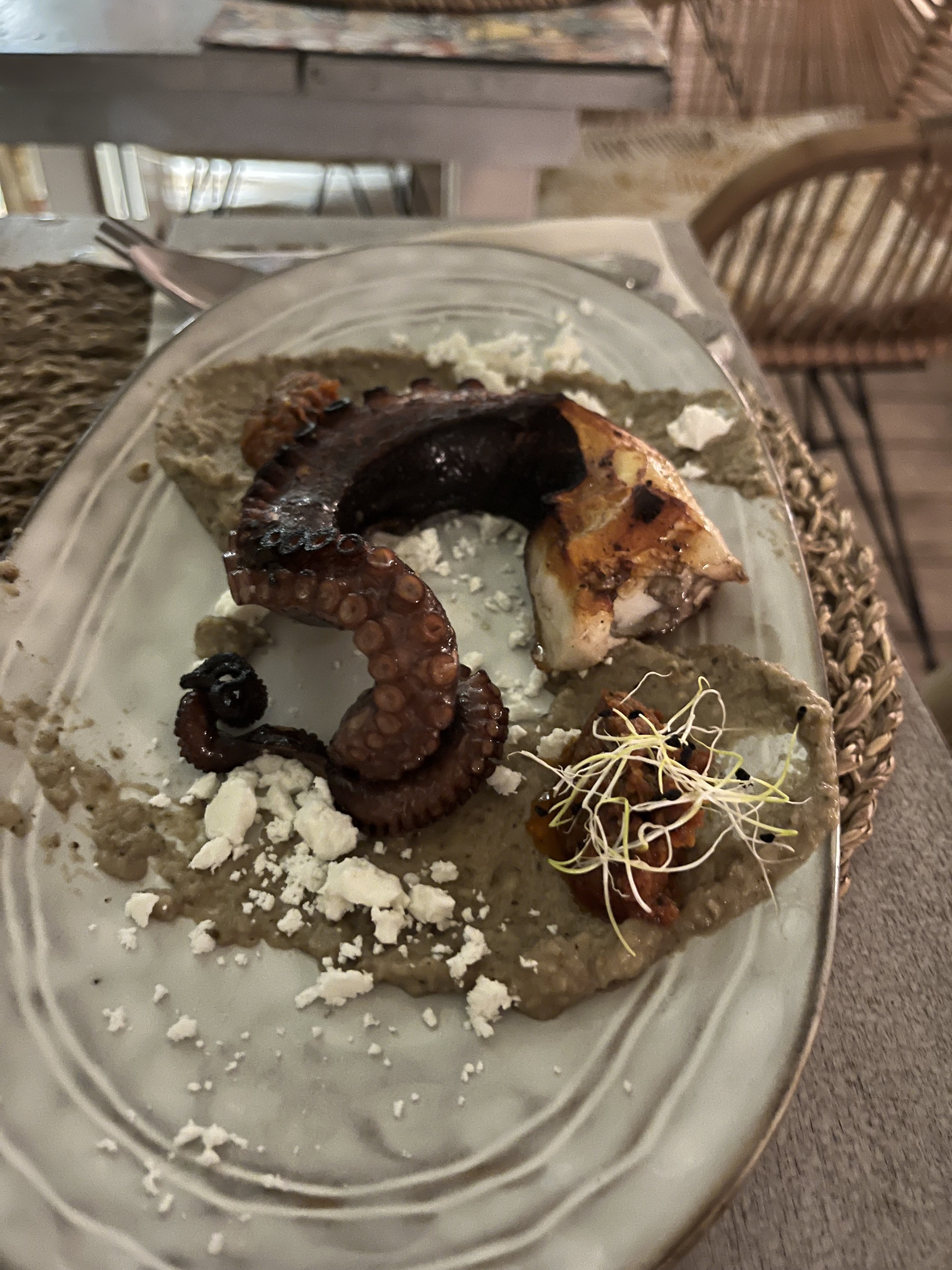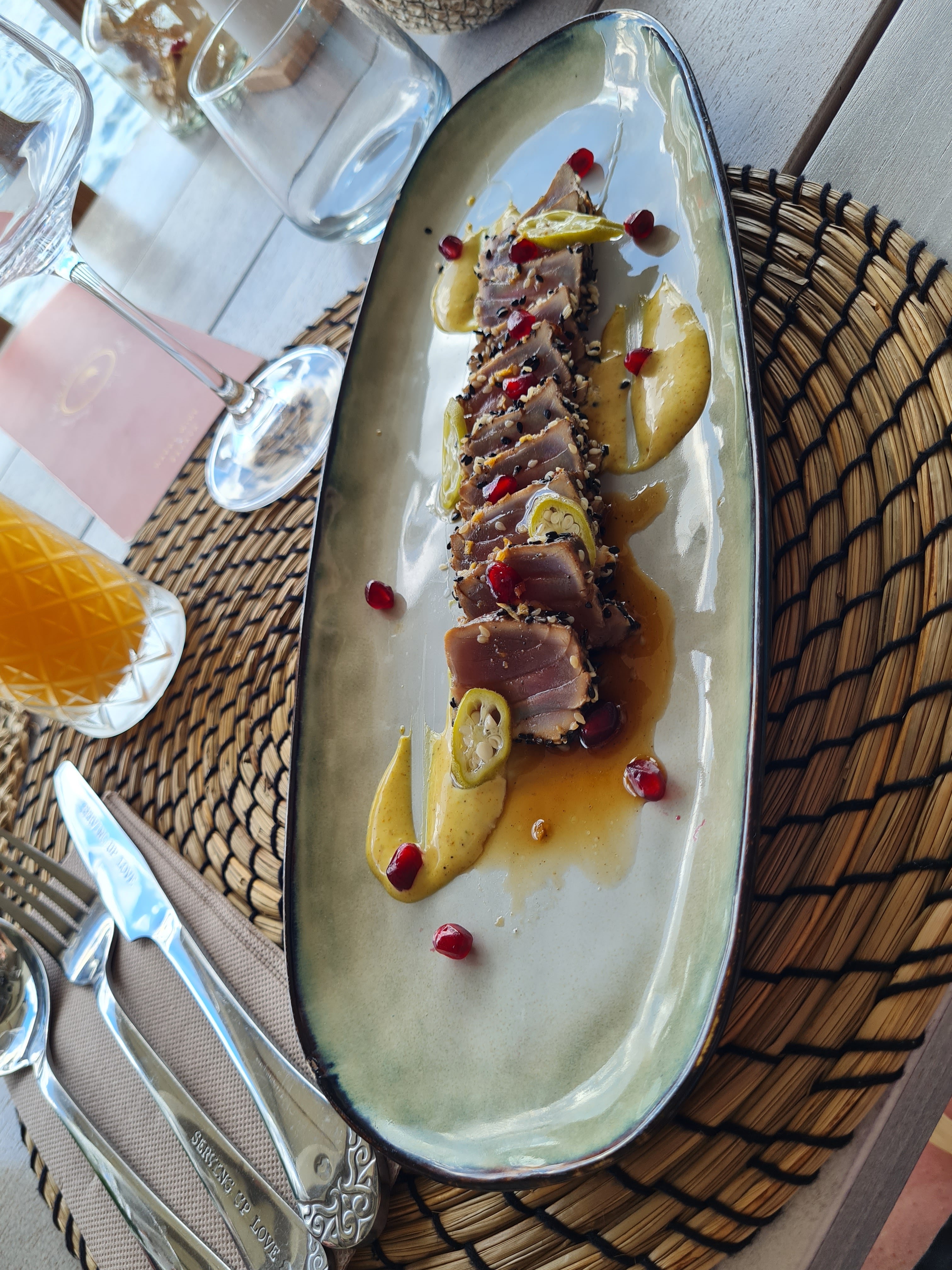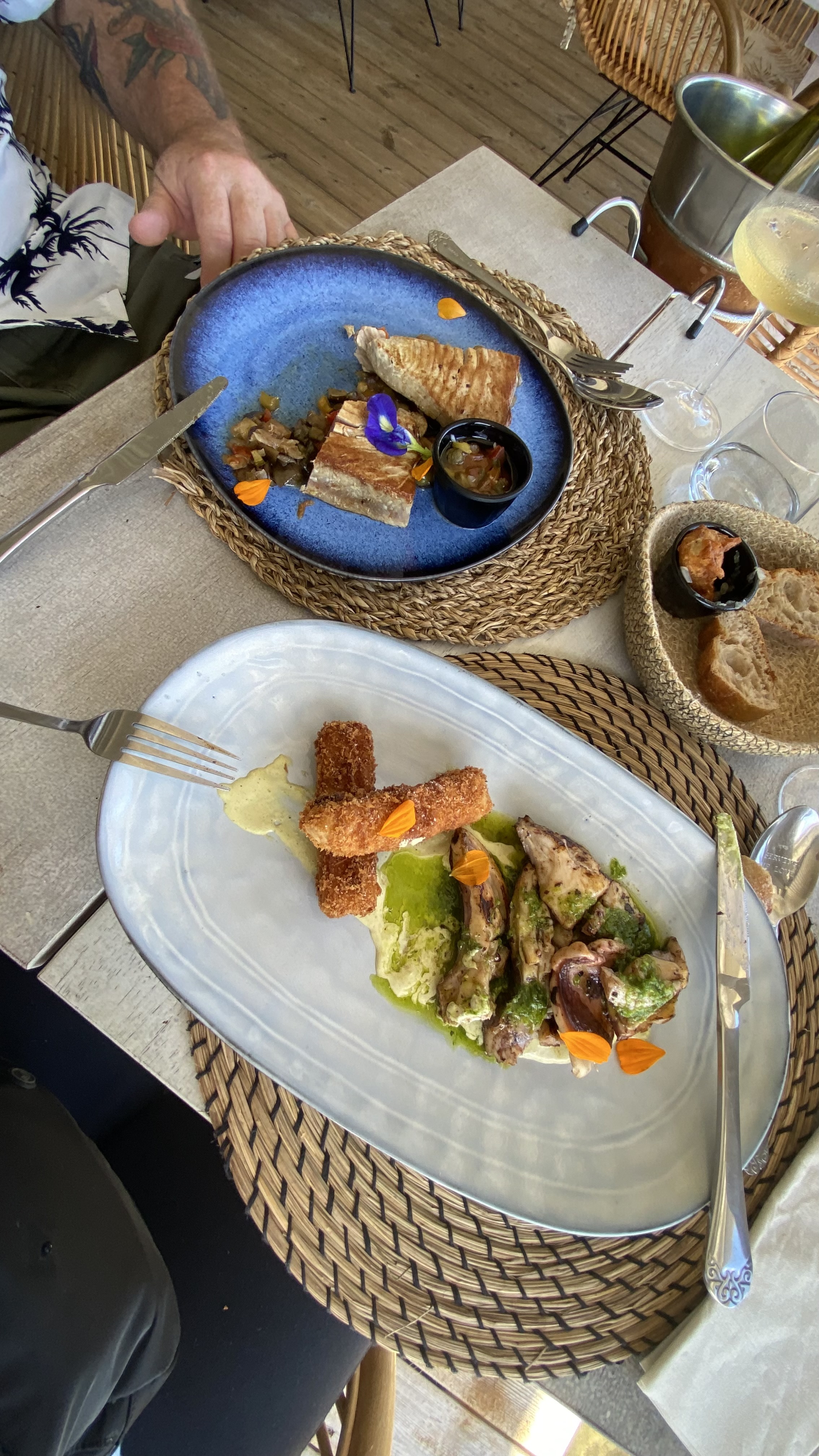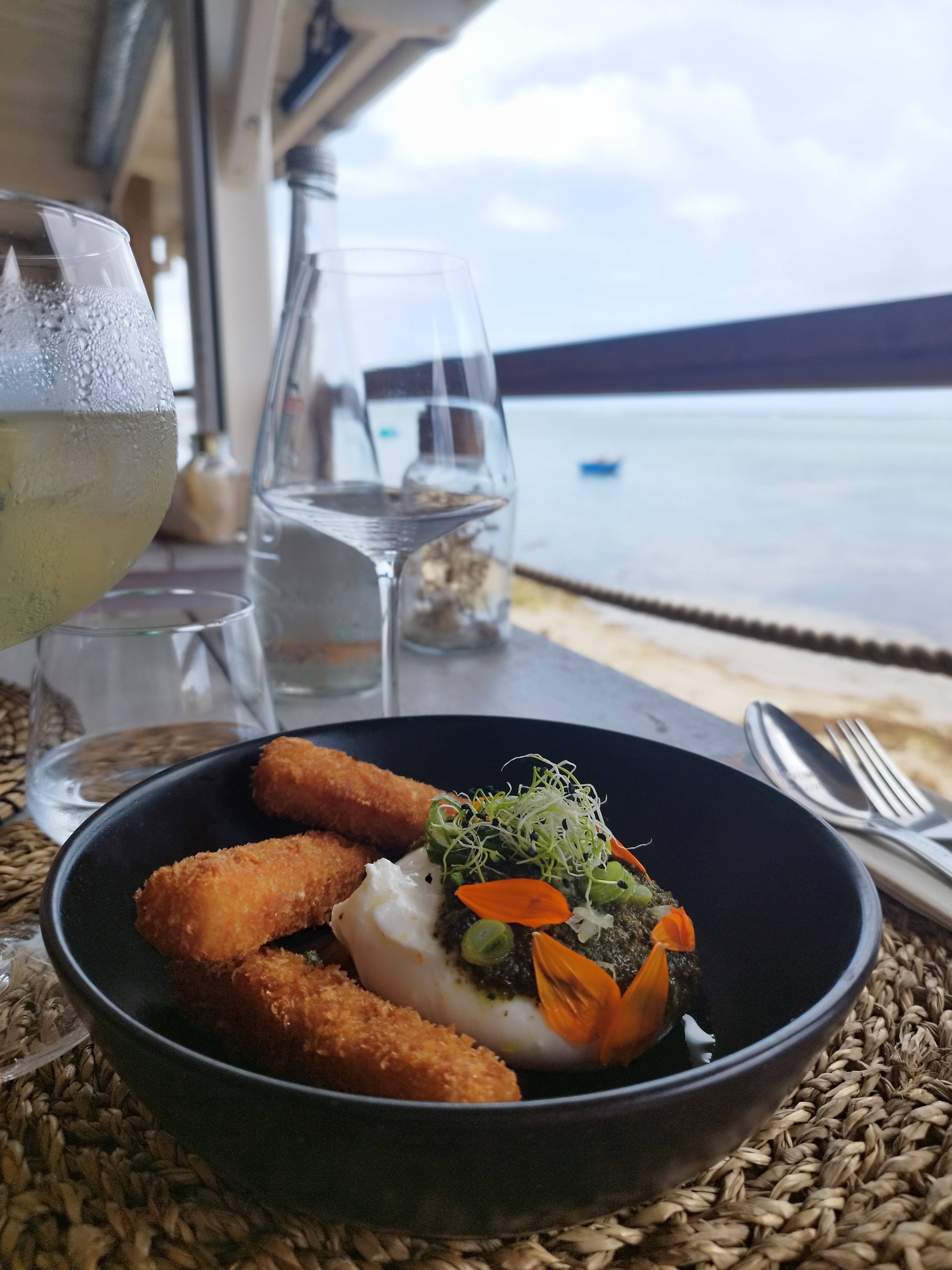 Superbe expérience. Setup de salle parfait pour profiter de la vie sur une mer bleu azur et une eau transparente. Cocktails savoureux, plats gouteux préparés avec des produits frais. Assaisonnement judicieux, sauces et accompagnements maîtrisés. Service souriant et attentionné. Vins de qualité aux prix raisonnables. Nous avons passé un bon moment.