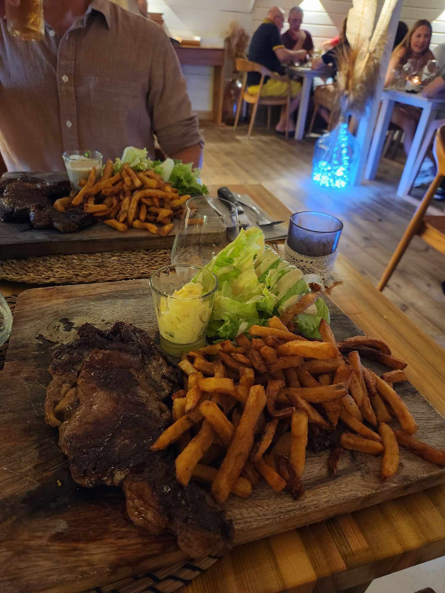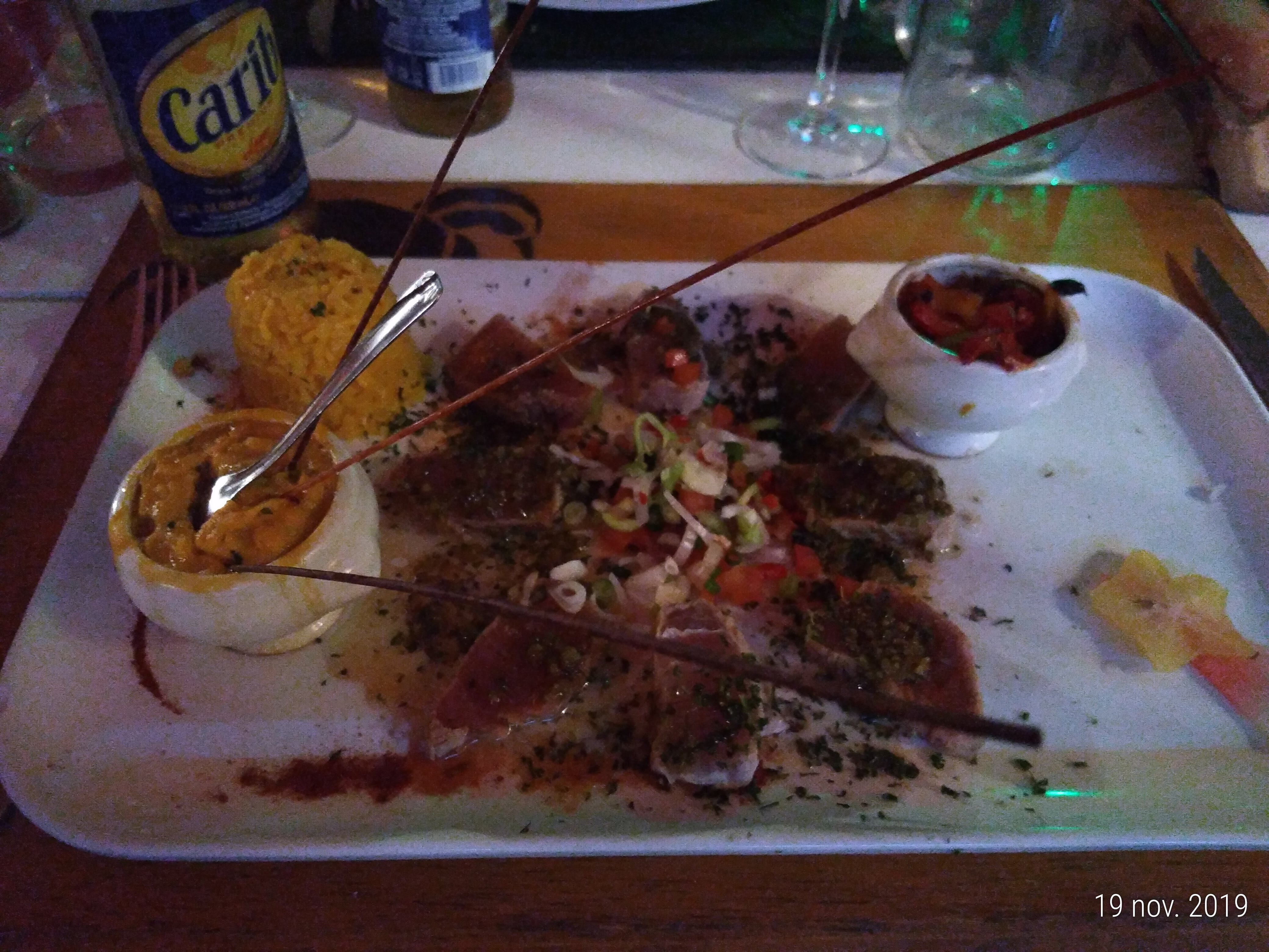 Diner au Zagaya, très joli endroit et accueil très sympathique : ils nous ont changé de table pour nous mettre en terrasse près de la mer. Planche en entrée assez copieuse, Petit bémol sur les pêtes aux langoustes avec trop de sauce et la bisque trop présente au détriment d cela langouste.