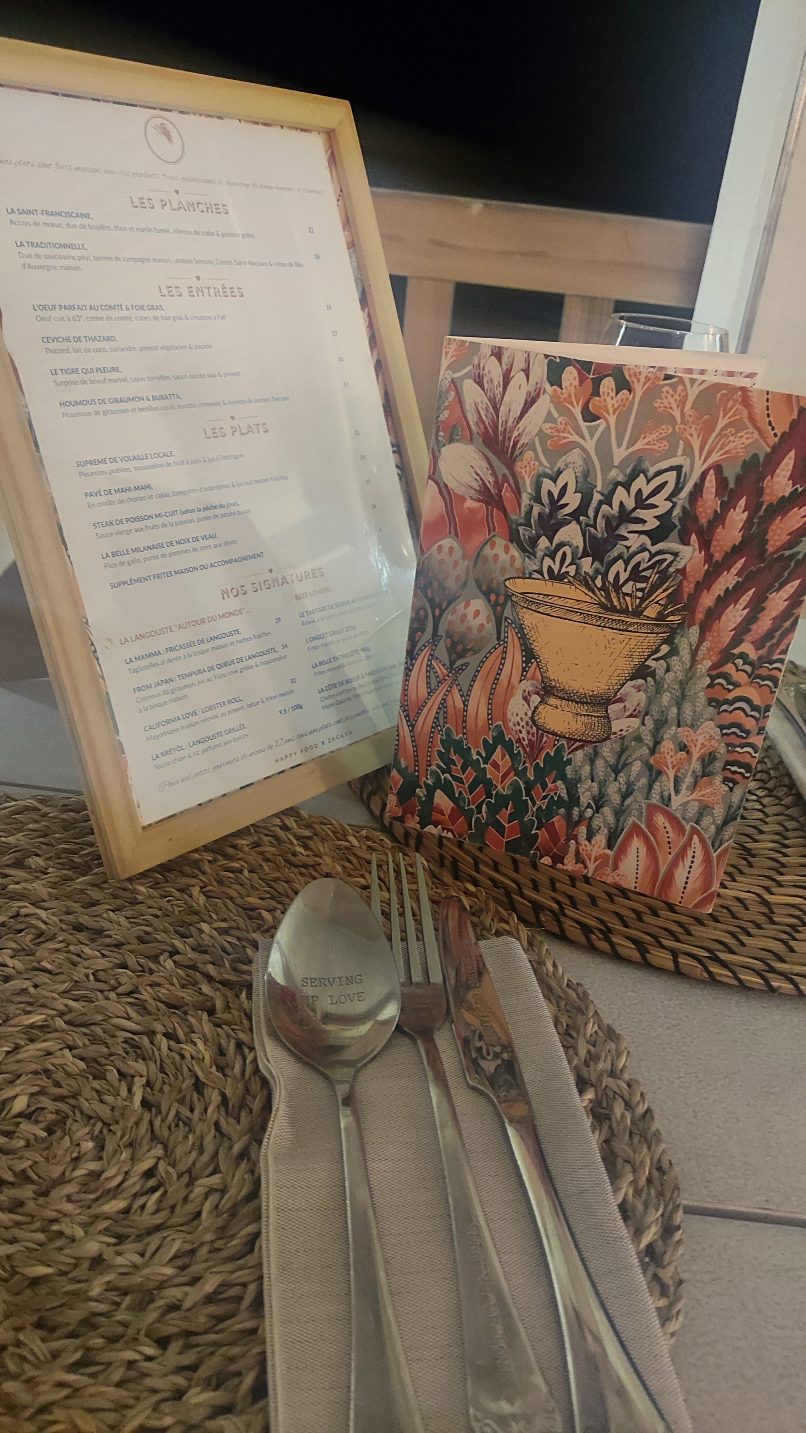 Très bon accueil et service. Le cadre est magnifique.. super déco...très belle vaisselle ...couverts serving up love et des serviettes en papier épaisses d une qualité indéniable