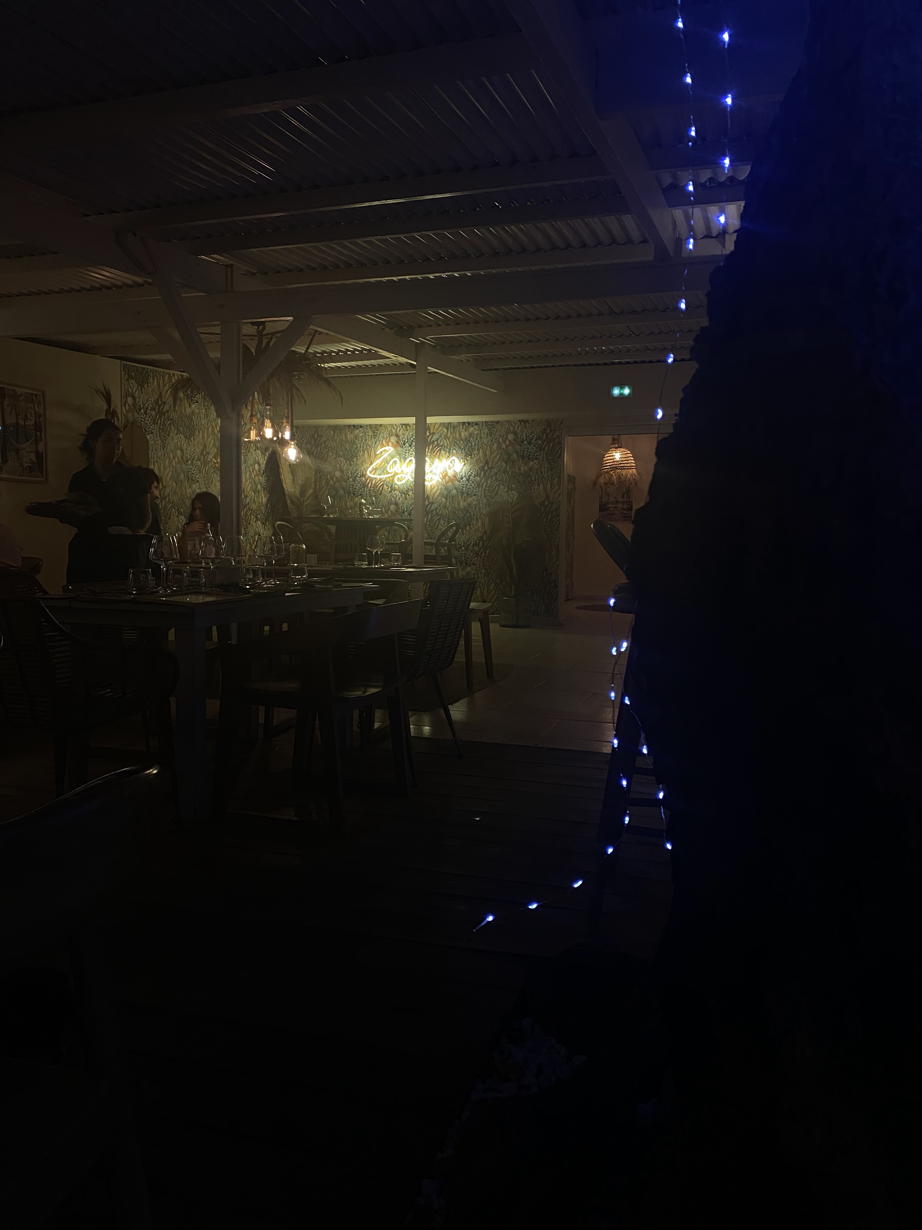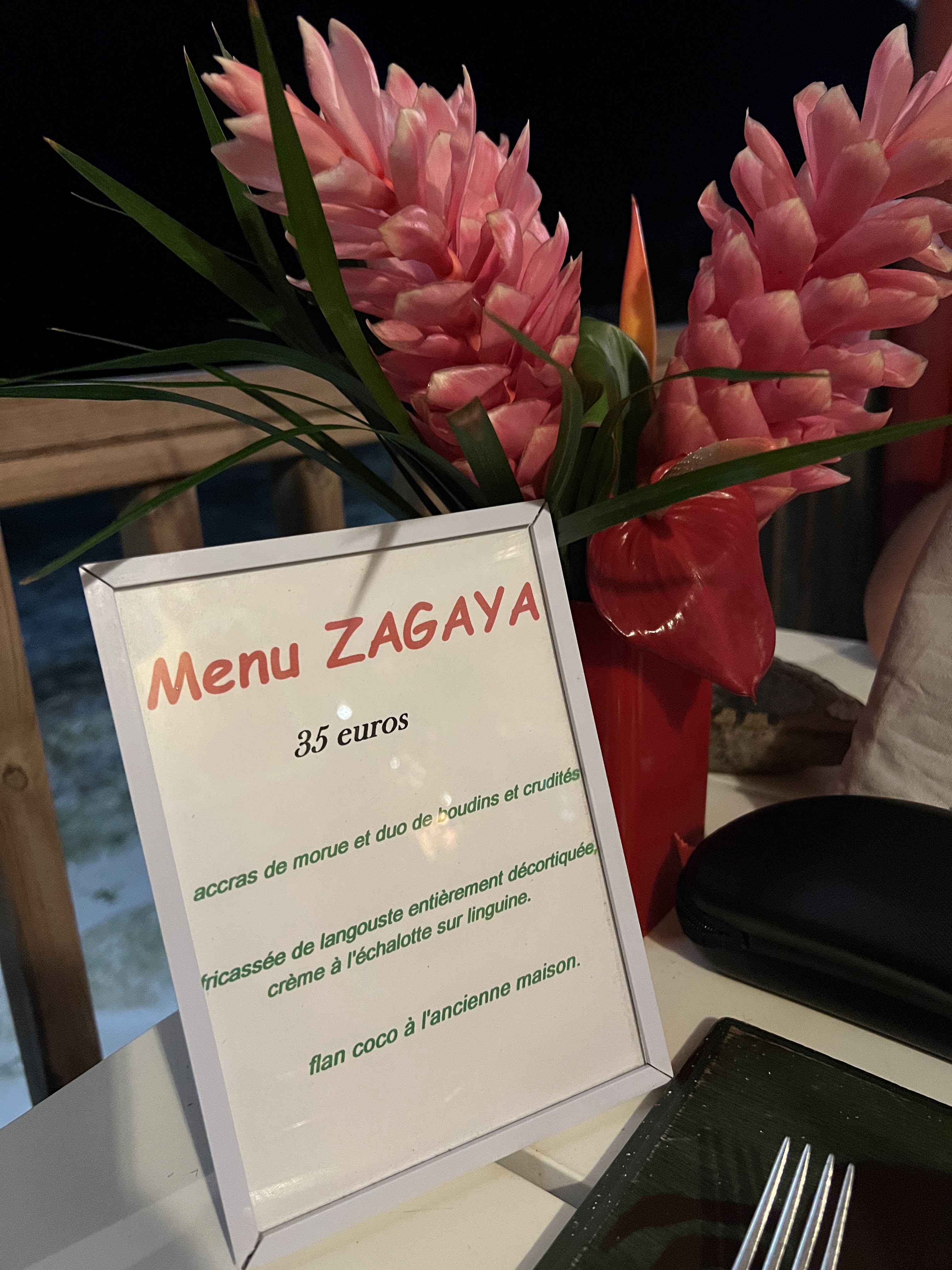 Nous avons passé un bon moment au Zagaya, le service est impeccable de la prise en charge à l'addition. Leur système de réservation en ligne est tellement pratique, très appréciable car trop rare en Guadeloupe. Nous avons eu une super table, peut-être car j'avais précisé que nous venions pour l'anniversaire de mon compagnon. Le cadre est vraiment sympa et l'ambiance très bonne. Nous reviendrons déjeuner le midi pour profiter de la vue mer 🌴 Concernant la carte, la burrata est un excellent choix, nous aurions aimé que le reste soit un peu plus marqué en goût et ça aurait été parfait ! À bientôt 🌞