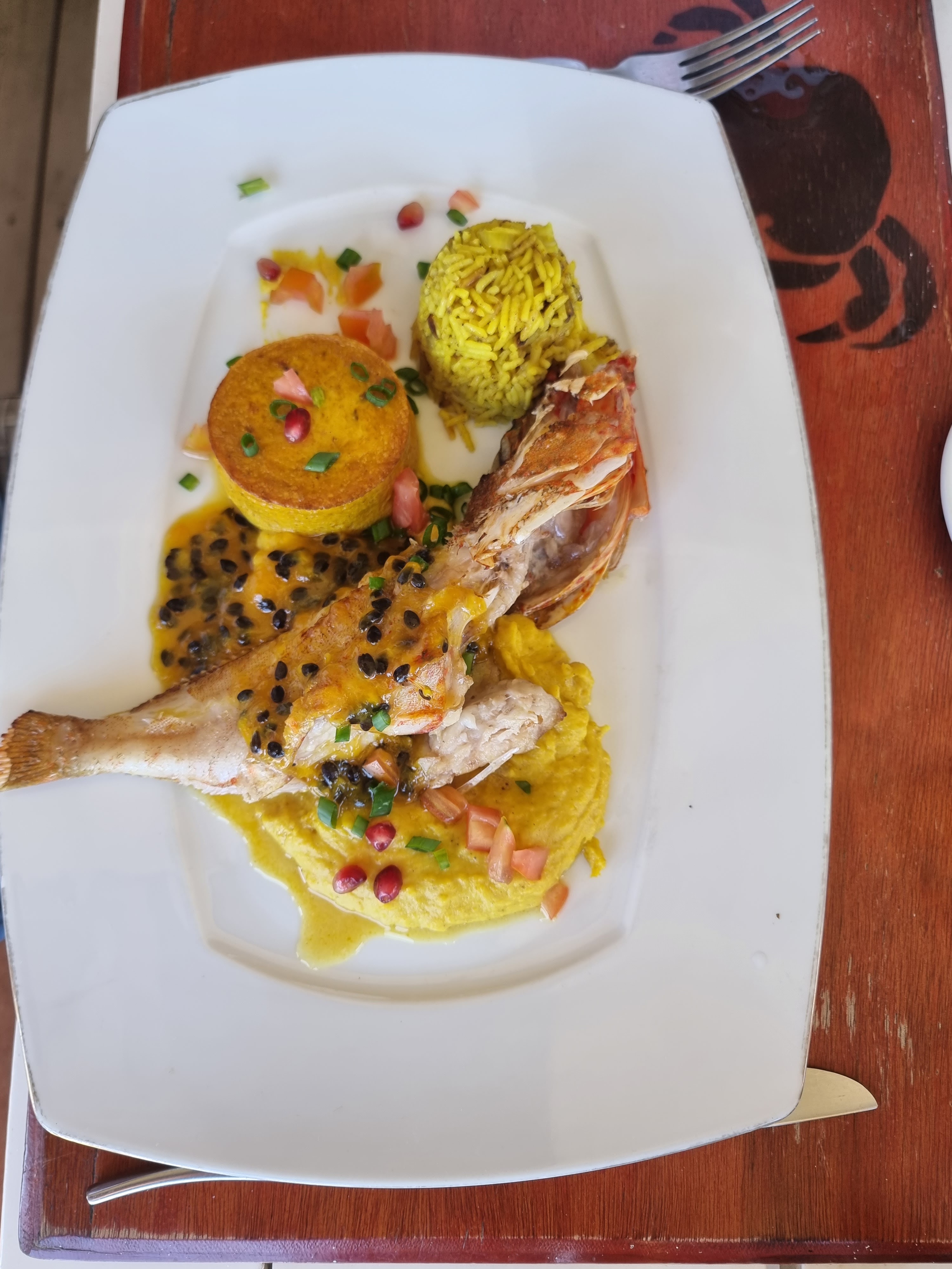 Excellent accueil J'ai testé le menu à 35e entrée plat dessert Entrée accras et boudins bons La fracassé de langouste sur linguine était très bonne et plutôt copieuse Flan coco rafraîchissant pour terminer le repas Rhum à l'anis offert Mi cuit de thon très bon