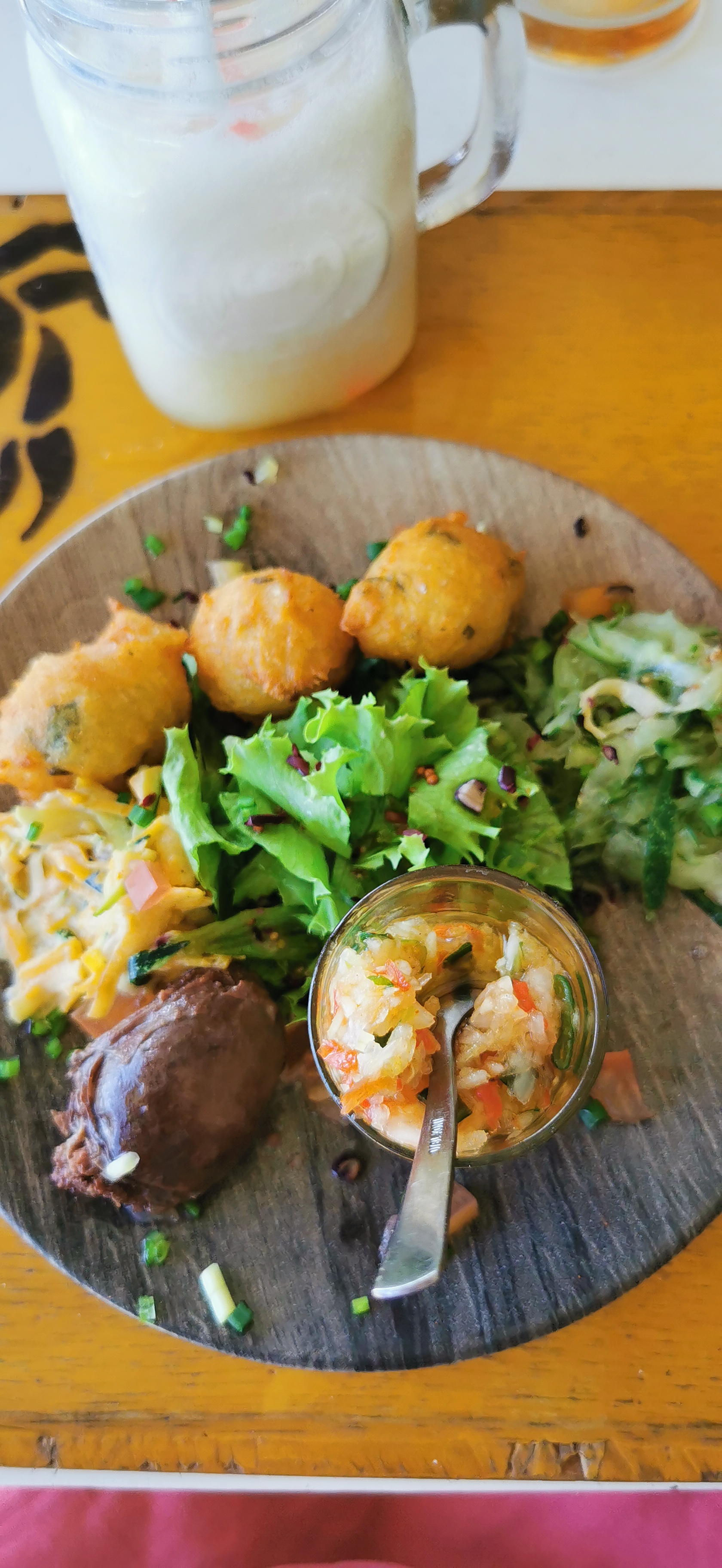 Bon mais très cher, pas grand chose pour une assiette à 25 euros. 2 boules de glace à 6 euros, même pas un petit gâteau avec... Trace de rouge à lèvre sur mon verre d'eau 🤮