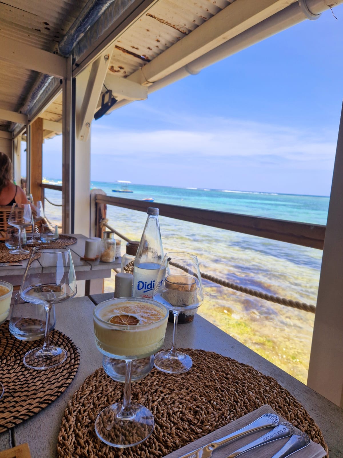 Un lieu sublime, bien décoré, même si les tables ont une proximité certaine. Mais la vue sur le lagon (quand il n'y a pas de sargasses) est parfaitement incroyable ! La carte est variée et change de ce dont nous avons l'habitude en Guadeloupe. Alliant modernité et produits frais et locaux. J'ai apprécié mon repas et mon cocktail. Le dessert était également très réussi. En revanche, je trouve la note un peu élevée.