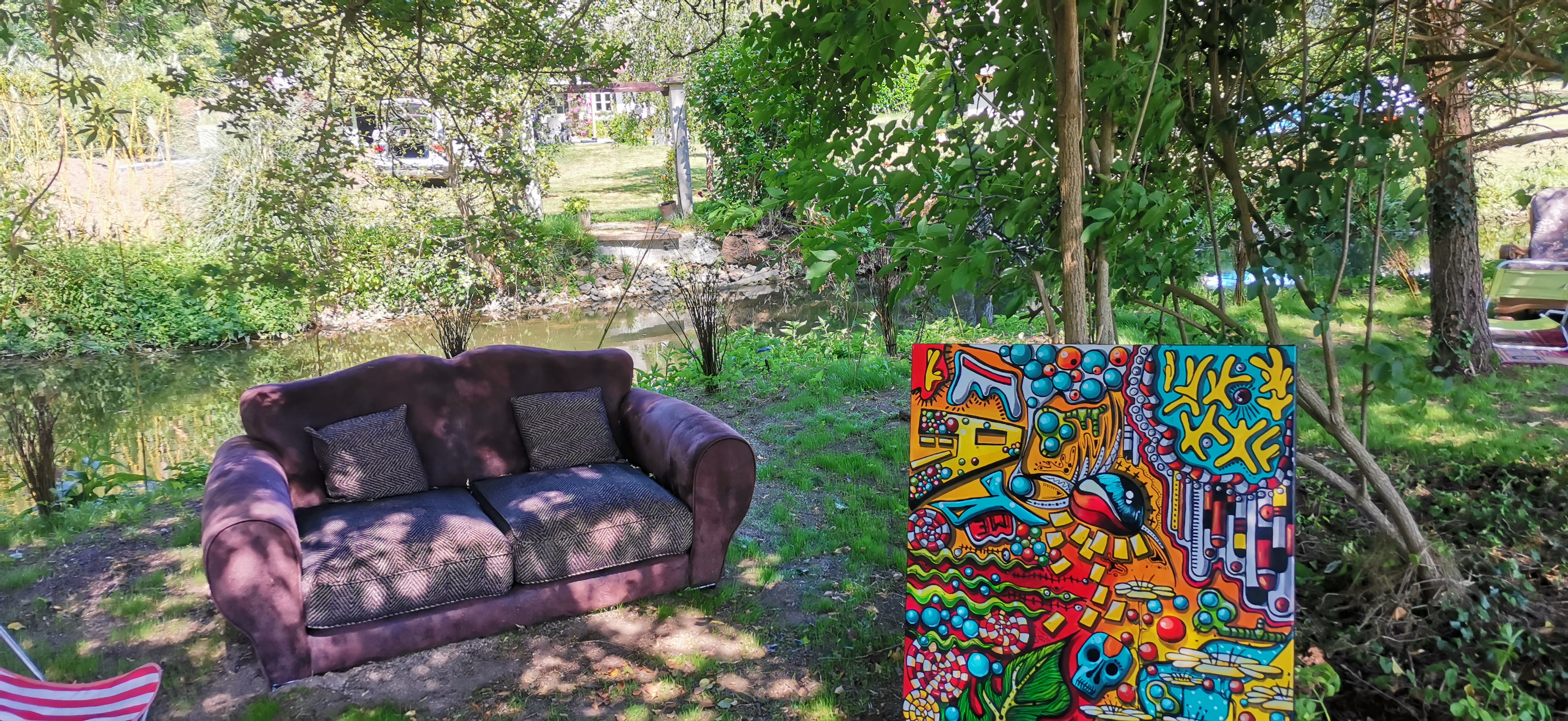 Excellent lieu atypique, naturel et artistique le tout au bord de l eau avec le confort d'un salon comme chez mamie. Bon sauf que chez mamie la bière ne est pas aussi bonne !
