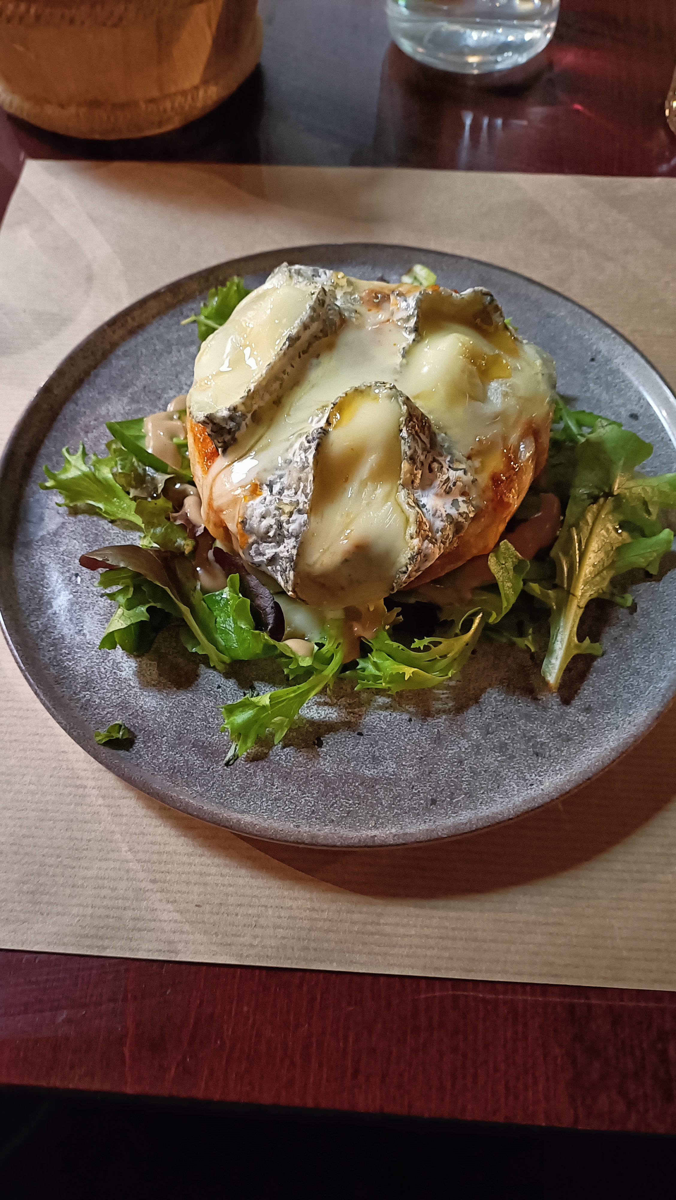 Nous y sommes allés avec des amis qui aiment bien ce restaurant. Au premier abord, l'ambiance est sympa et rustique, ça sent bon et que ce soit au rez-de-chaussé ou à l'étage, le restaurant a du cachet. Pour la praticité par contre, c'est autre chose. Nous étions à l'étage et nos chaises étaient collées à la table derrière nous, ce qui a valu des coups de chaises involontaires et des sacs parterre qui gênent tout le repas. De plus, beaucoup de bruit en ce samedi soir, nous ne nous entendions même pas parlé. Le service quant à lui était correct et le personnel sympathique du début à la fin. Pour les plats, la qualite de la viande du burger y étais mais pas le goût avec un assaisonnement assez fade. Les frites maison étaient bonnes. Par contre, ma compagne et notre amie ont pris toutes les deux un camembert rôti qui étaient juste parfait et d'excellente qualité selon elles mais il n'y avait pas les mêmes charcuteries dans les deux plats, pourquoi? Je ne sais pas mais la moindre des choses et de donner la même chose à tout le monde. Par exemple, jambon sec à l'une mais pas l'autre.... Pour le dessert, des cannelés façon profiteroles corrects mais j'en ai eu mangé des meilleurs. Pour ma compagne, c'était un café gourmand qui n'était pas à la hauteur. Certains petits desserts comme le tiramisu ou la tarte citron meringuée n'étaient pas bon du tout, vraiment dommage. Et pour 60 € pour deux avec un apéritif chacun, c'est quand même cher pour ce que c'est. Les desserts méritent d'être bien meilleurs à ce prix là.
