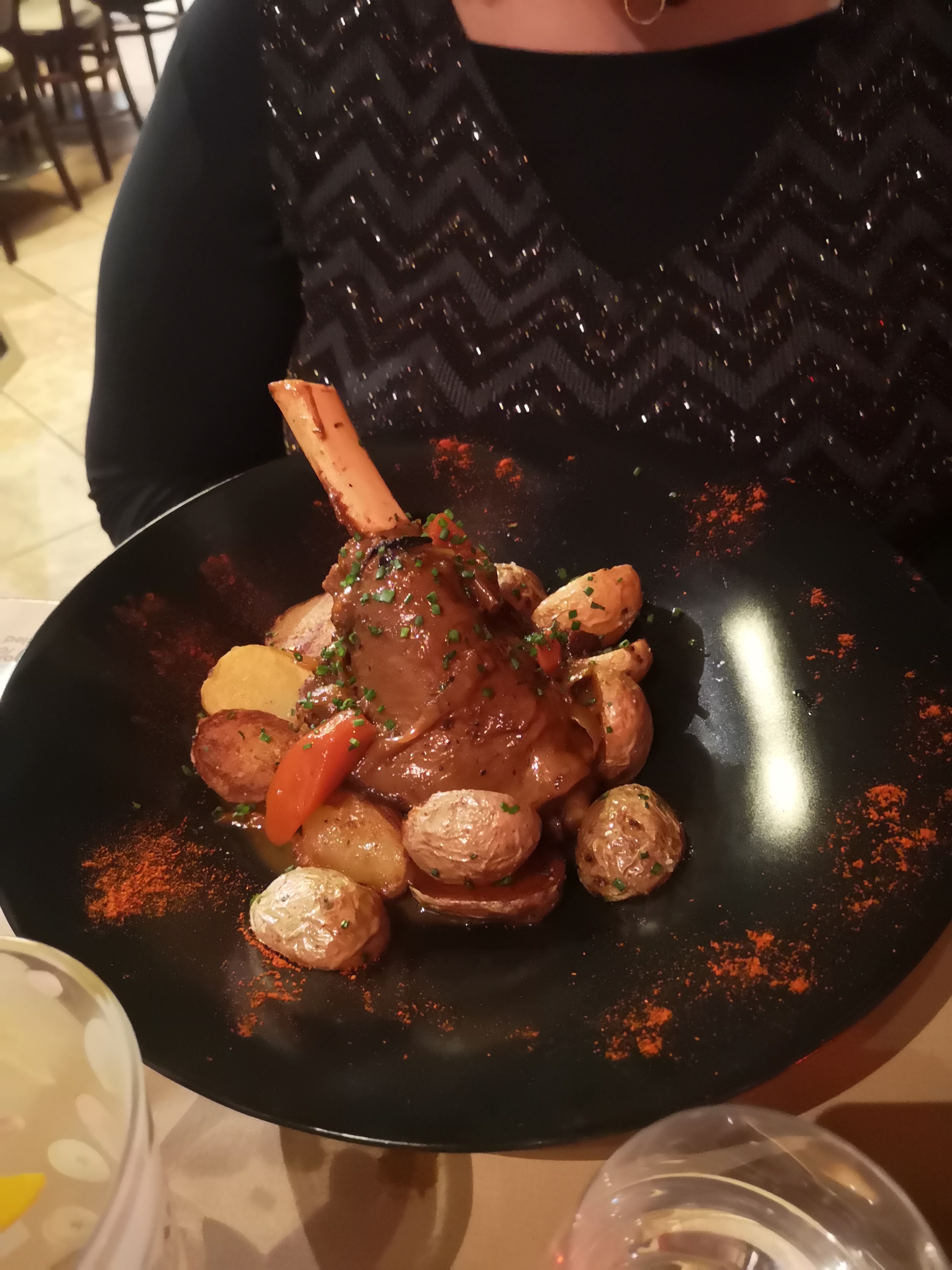 Repas de groupe donc un peu compliqué pour la serveuse...mais elle manquait tout de même de sourire...elle avait l'air débordé ! On attend encore nos digestifs! Sinon, le repas était correct