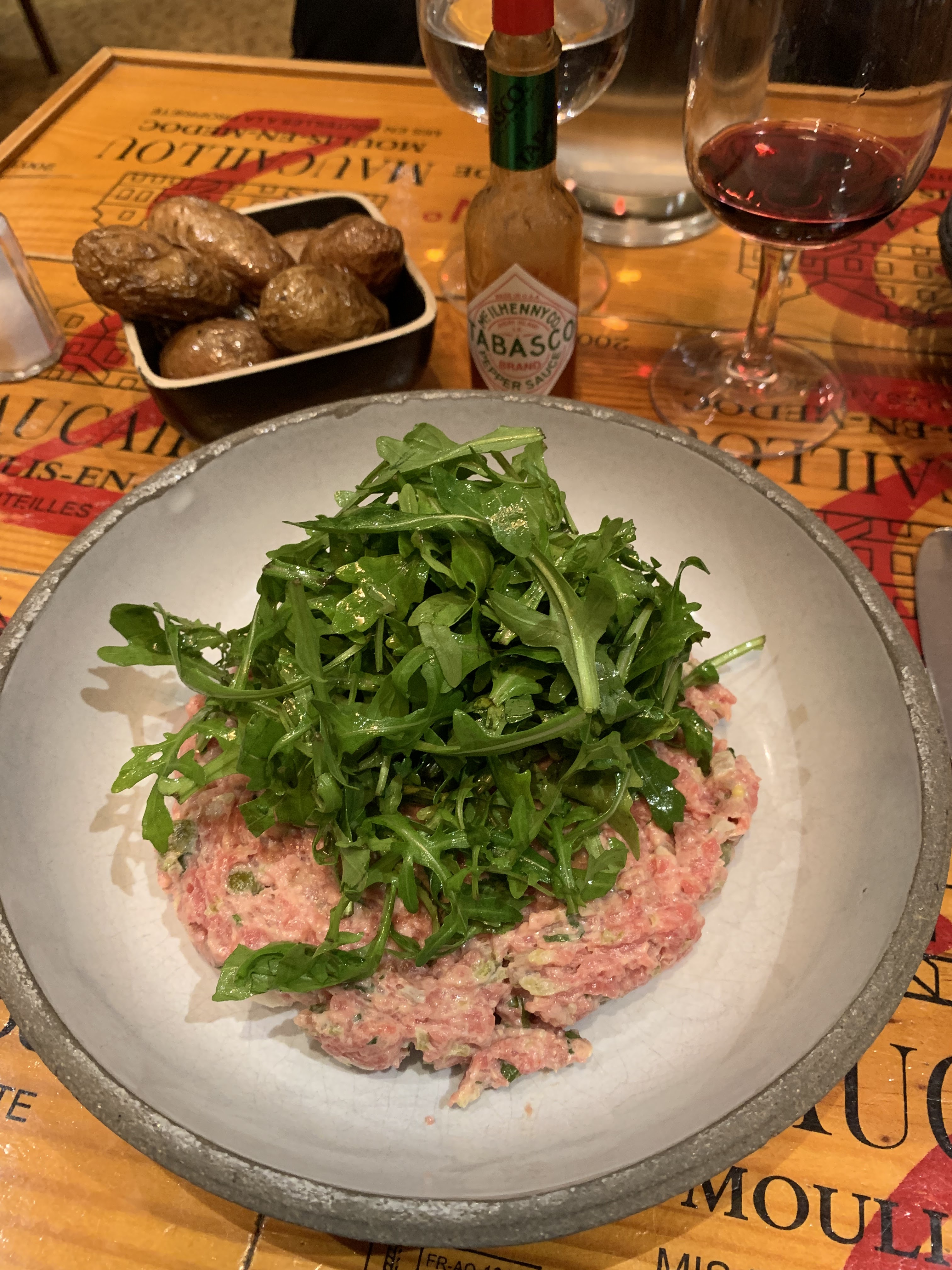 Je suis venu pour me restaurer et je suis reparti en ayant faim. Les saveurs ne sont pas assez abouties : pas assez relevées, malgré quelques épices et agrumes. Surtout trop peu de quantité. Exemple : le tartare vient sans frites Pour ses prix là on s’attend à mieux. Du moins c’est l’expérience que j’ai vécue hier