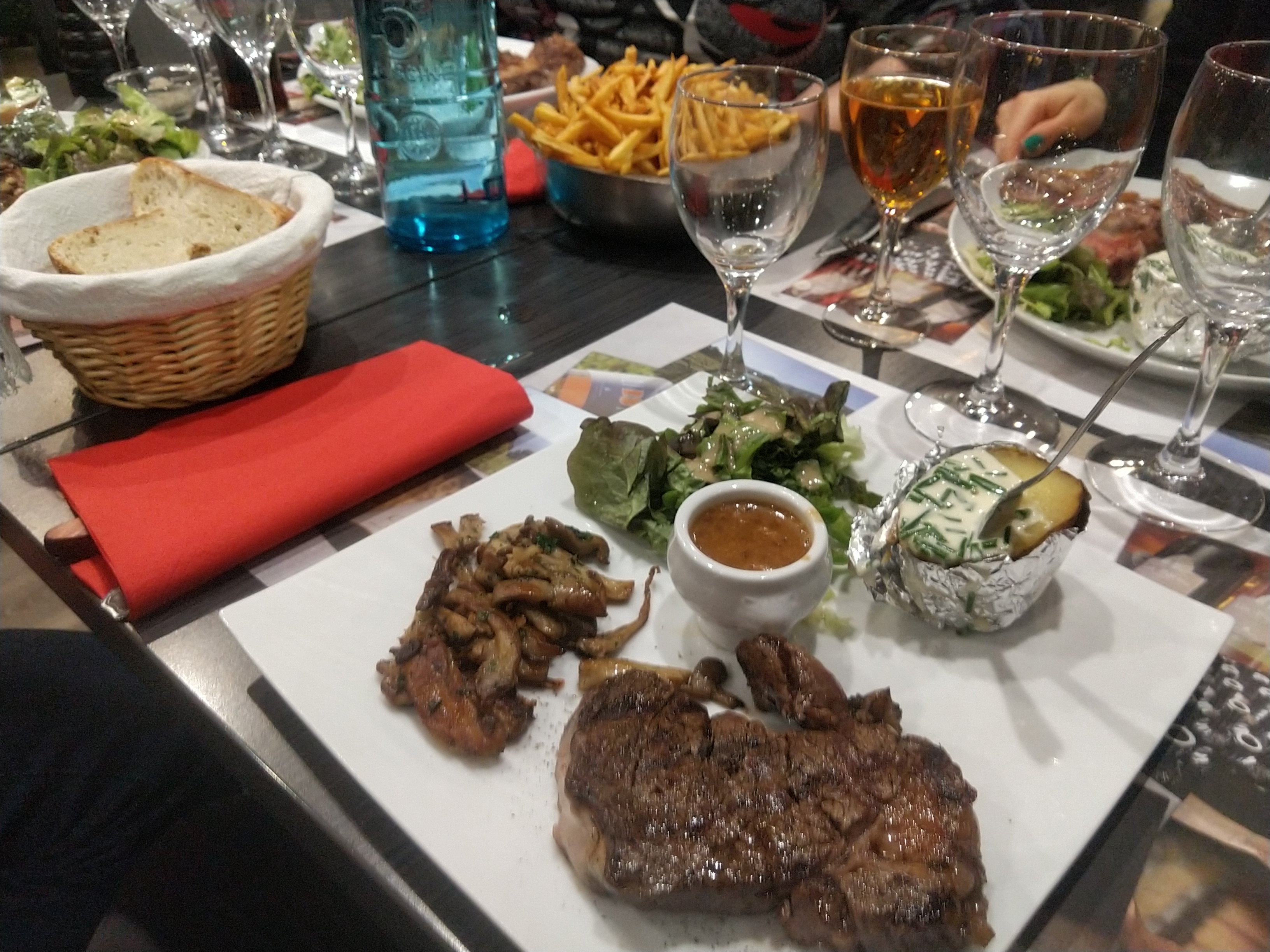 viande excellent, bonne cuisson, demi pas à 0,25, on nous demande si apero ou pas,viande servi à la moitié de l'apéro, le verre de vin à 4e pas deman, il faut demander ça sauce, proposé à certaines personnes