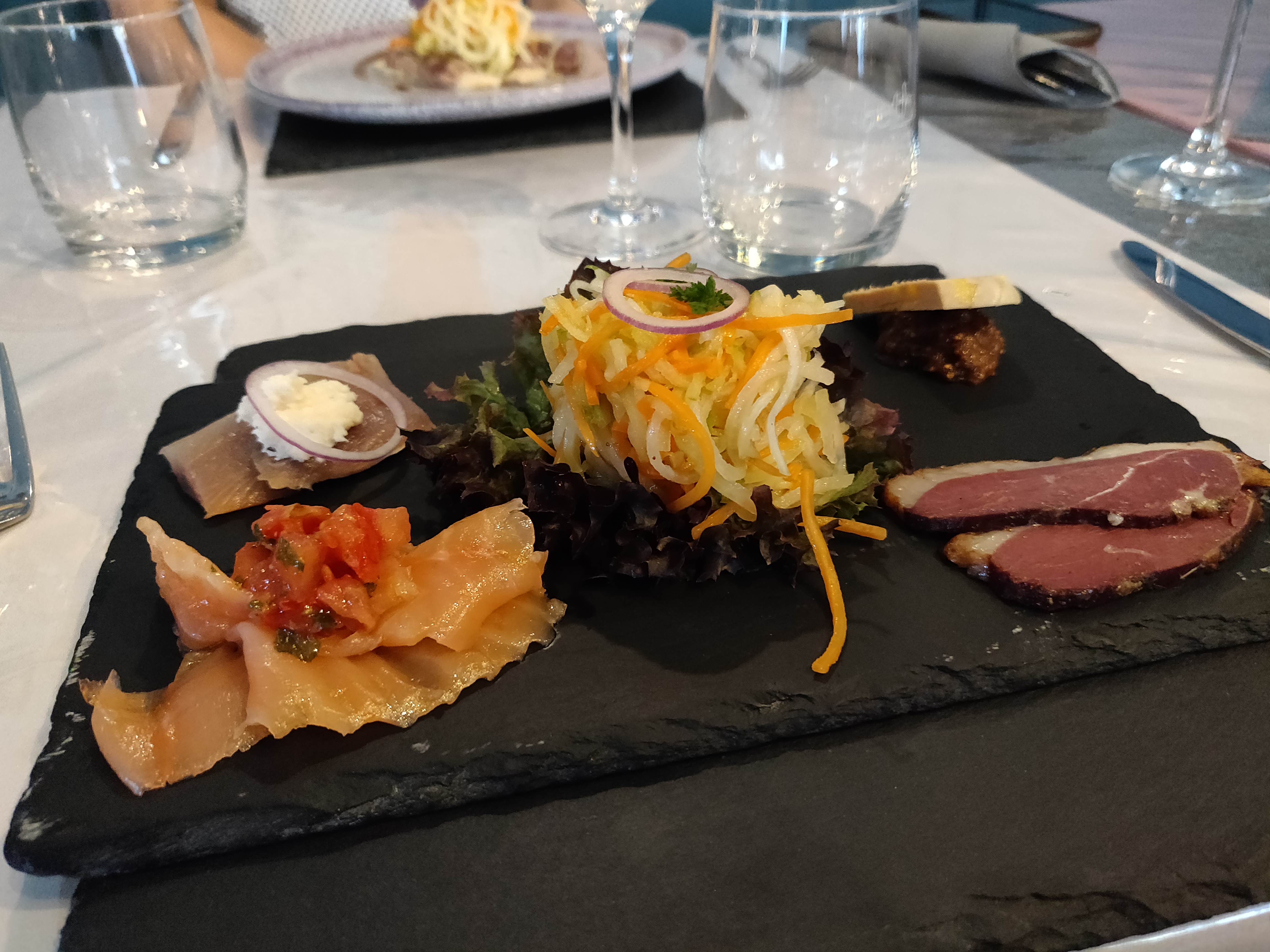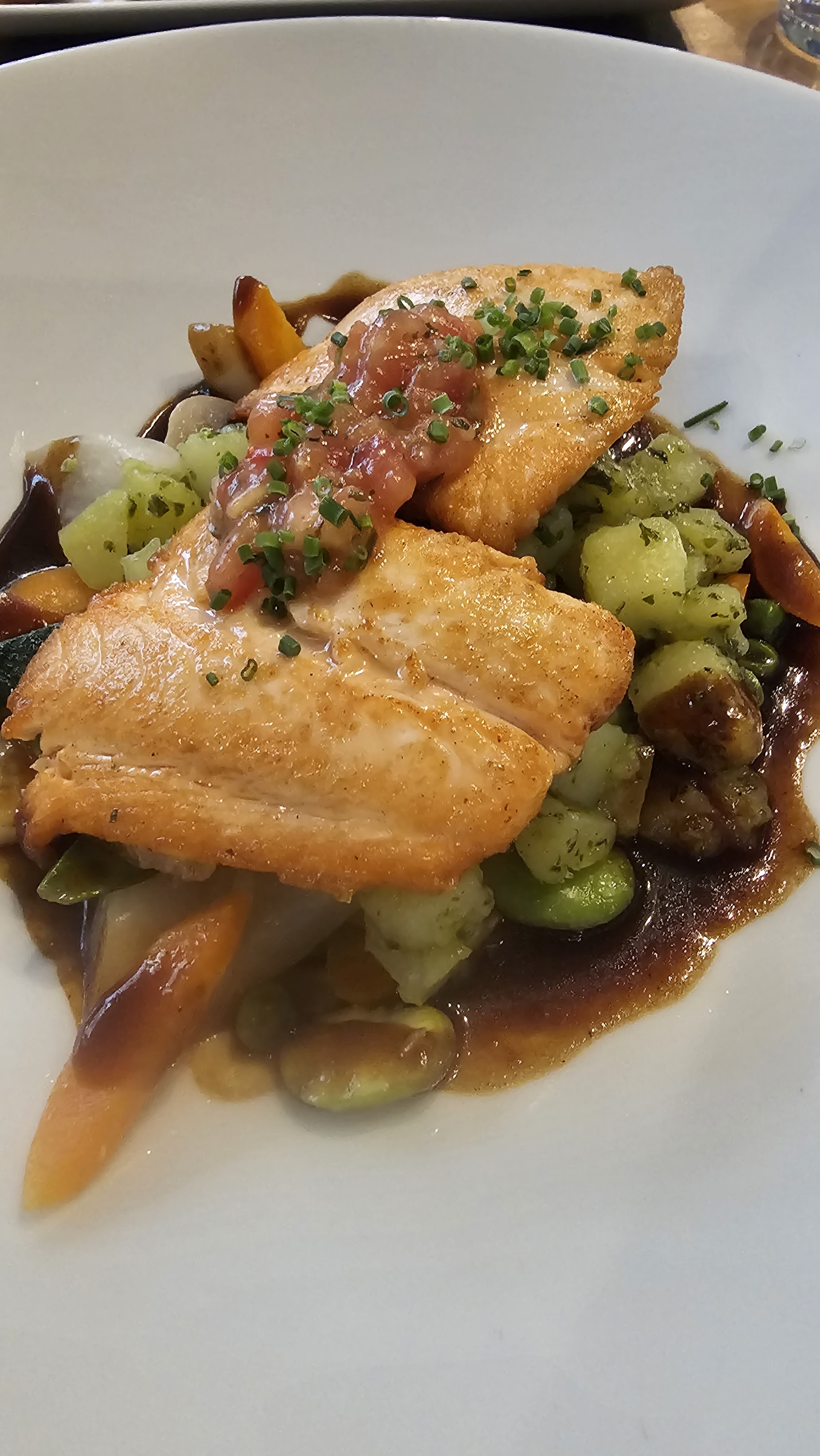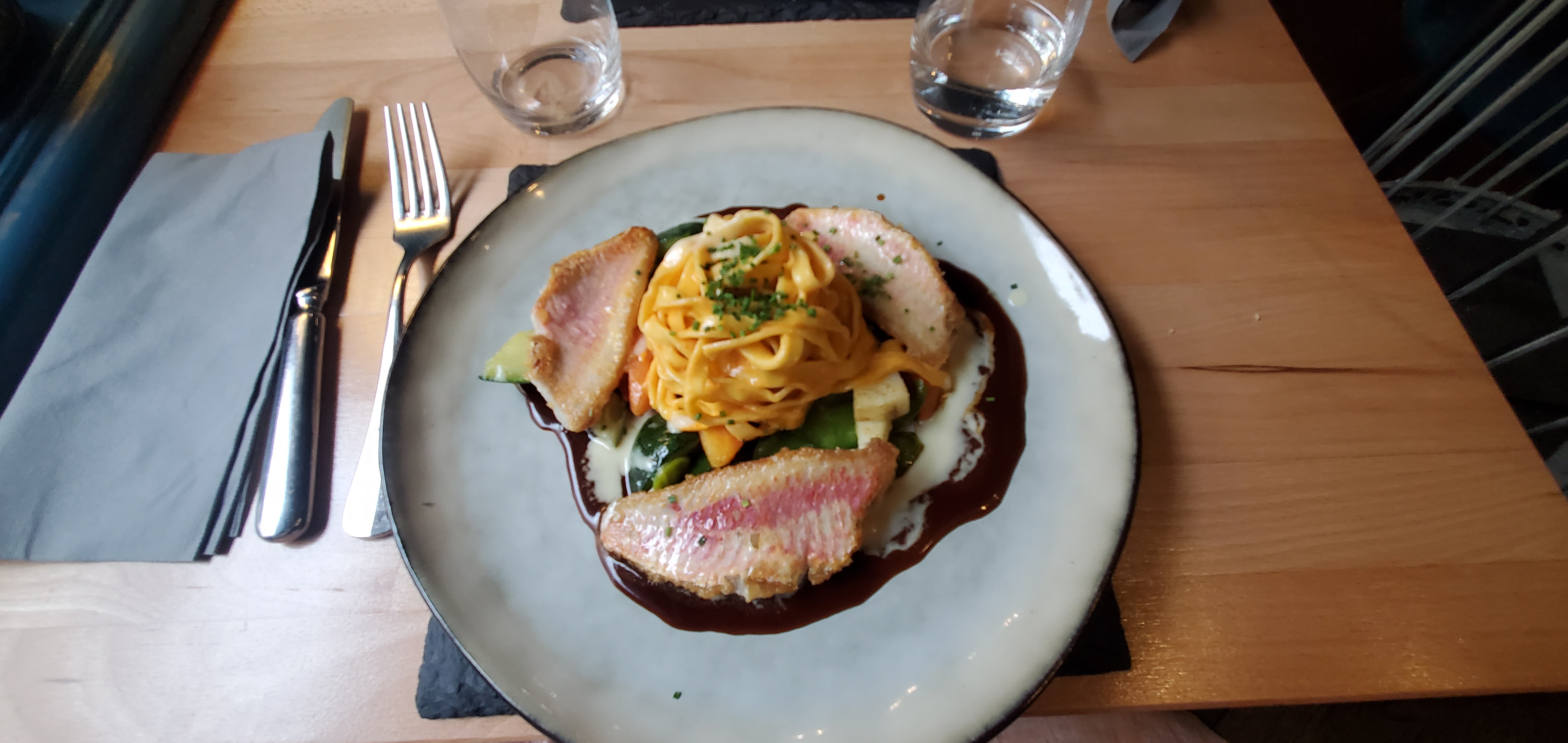 Alors là grosse surprise... Extrêmement raffiné et goûteux... Produits de saison. Je m'attendais à une cuisine plus simple. Donc nous étions ravie forcément 😄