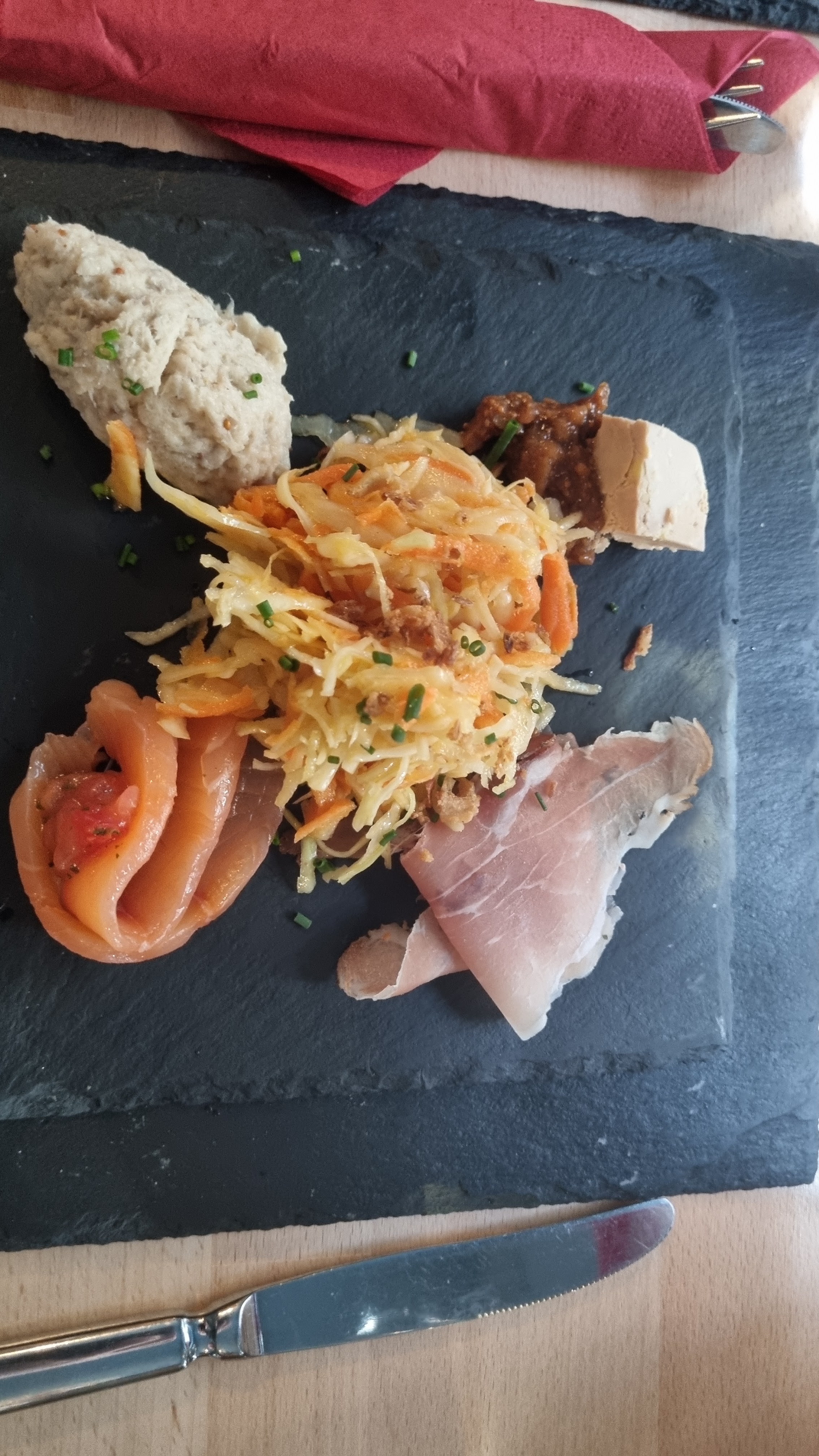 Un pur bonheur acceil très sympathique avec des mets succulent rien que les photos vont vous faire saliver ! Seul inconvénients le gnome qui veut boire le riesling 🤣🤣🤣