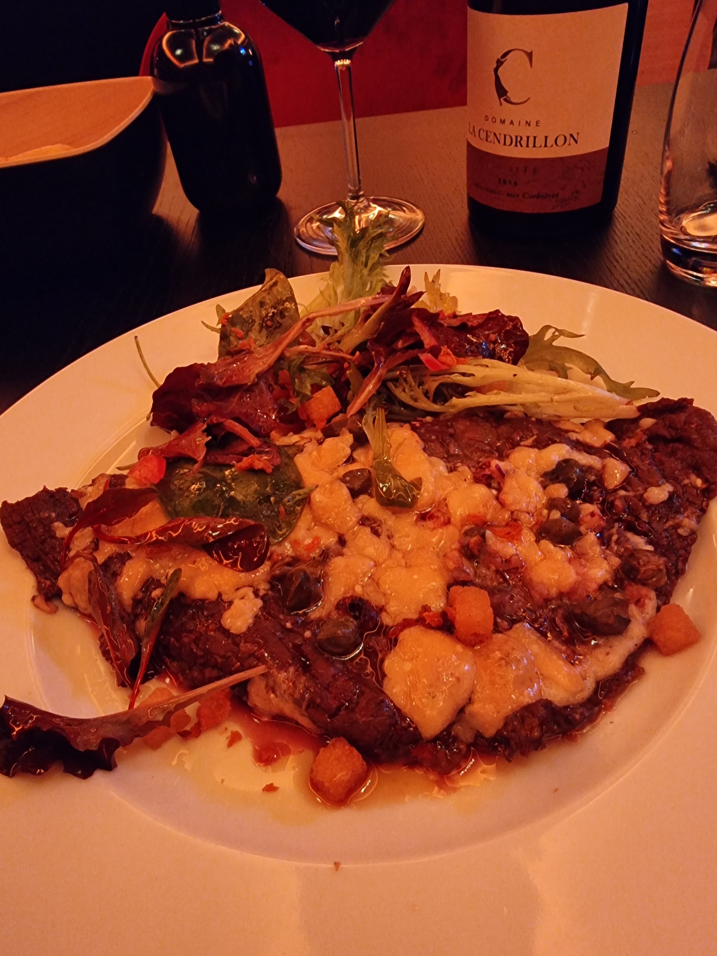 Expérience sans plus, la nourriture est bonne mais rien d’exceptionnel. Le service est lent. Autrement , bonne carte des vins.