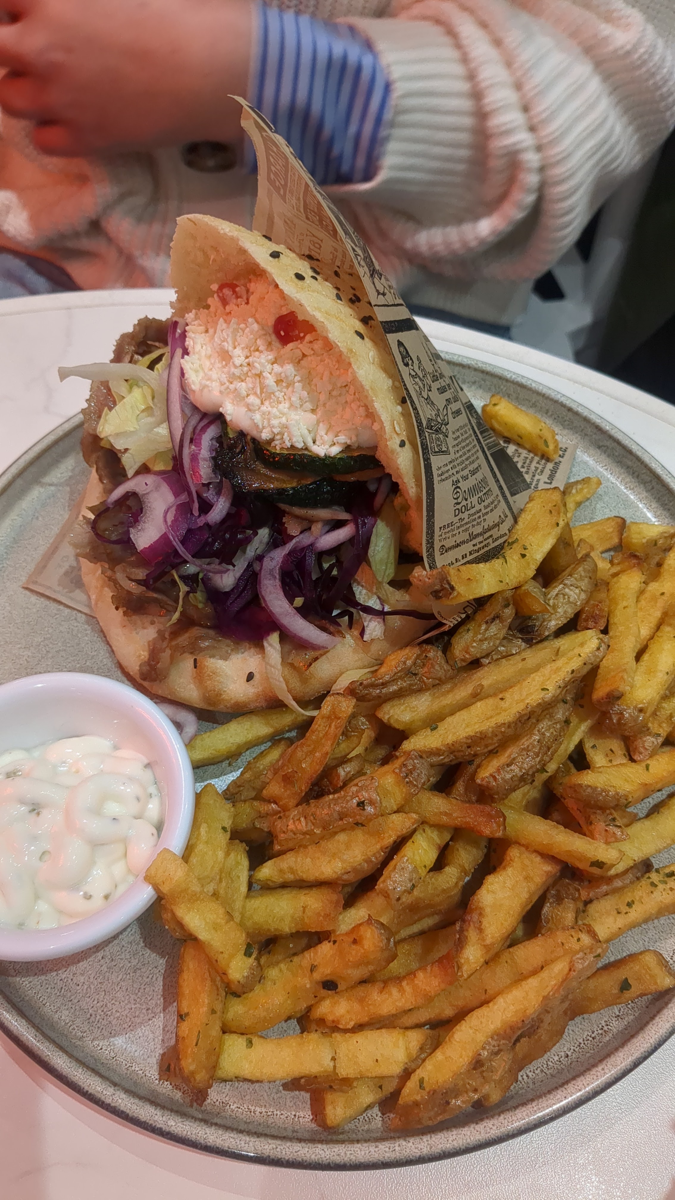 Vraiment délicieux, super Dönner Kebab avec des bons petits légumes grillés, très savoureux ! Frites maisons, le top ✨