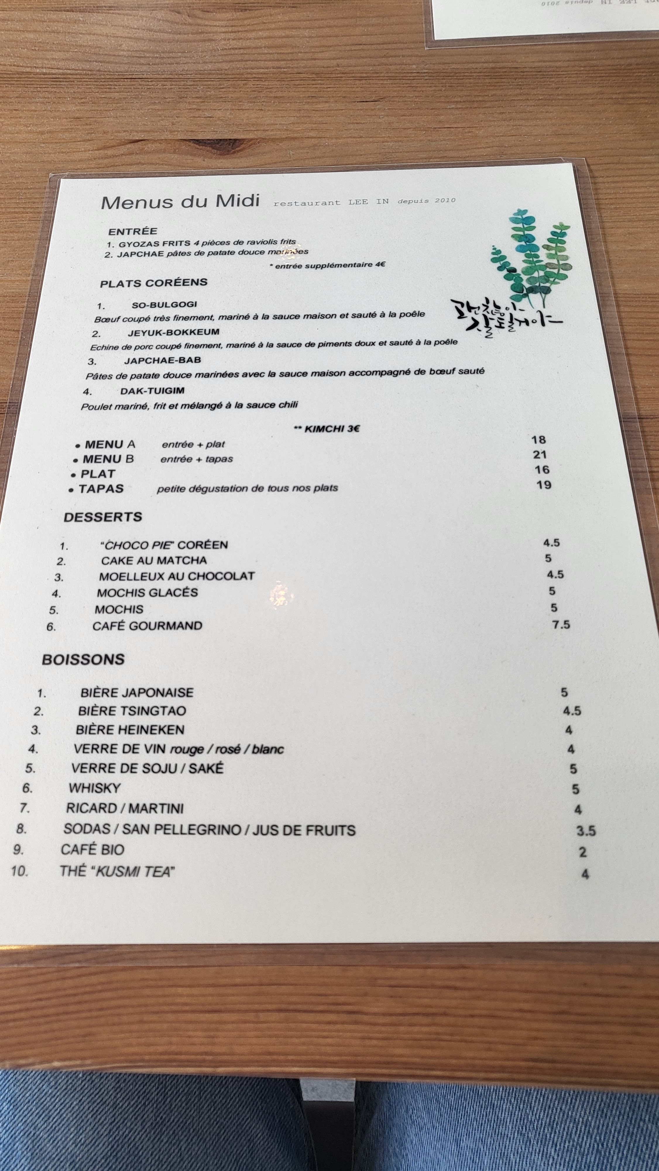 Petit restaurant sympa, décoration très douce, belle. Pris menu à deux Lee In : beaucoup de choses, permet de découvrir des plats différents. Petit bémol : j'aurais aimé qu'il y ai une sauce soit a base de soja ou gochujang pour les nouilles de patates douces qui n'avaient aucune sauce. Je recommande !