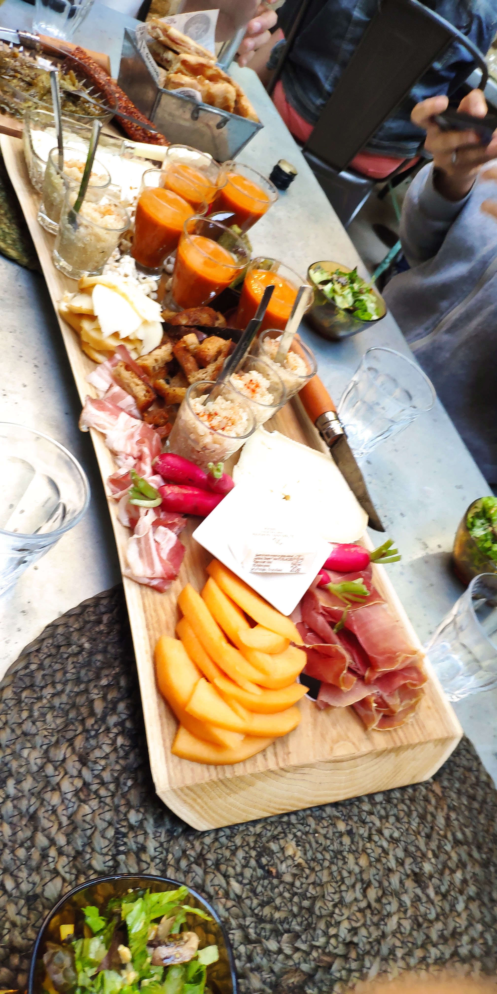 Une ambiance à mi chemin entre le steampunk et le bucolique, un bric à brac delicat pour les yeux. Le plat unique est toujours délicieux. Hier soir, une planche avec jambon sec, verrines de quinoa, gaspacho, pain à l'ail, fromages et fuet aux épices. Ce soir pizza, toute simple mais délicieuse. Je vous conseille celle au pesto. A essayer absolument!