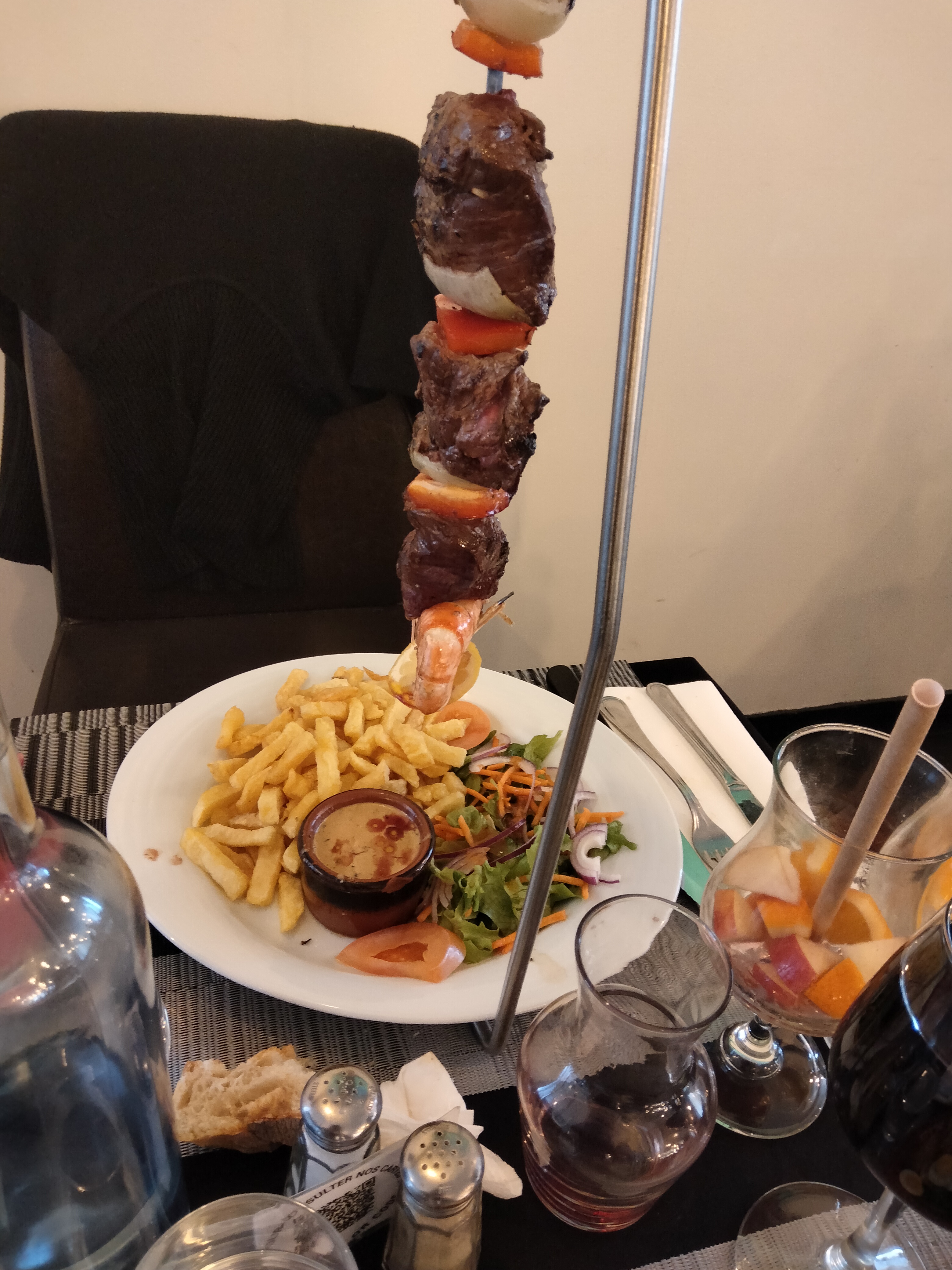 Très bon plat portugais. Attention tres copieux. Très belle brochettes.Parking devant gratuit.