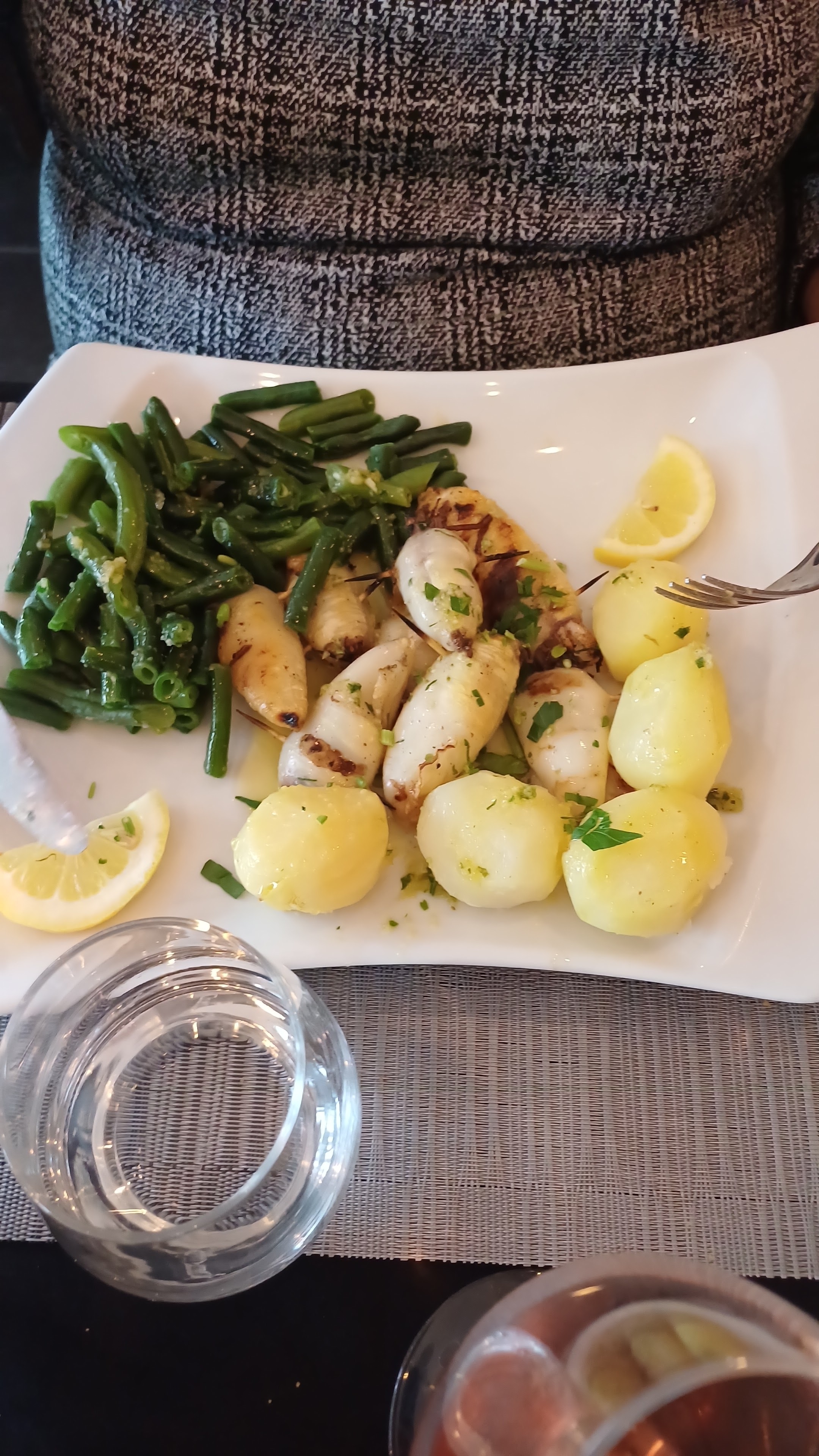 Très chaleureux , l entrée un peu cher pr 4 beignets, plats très bon manque de riz comme au portugal, dessert très bon