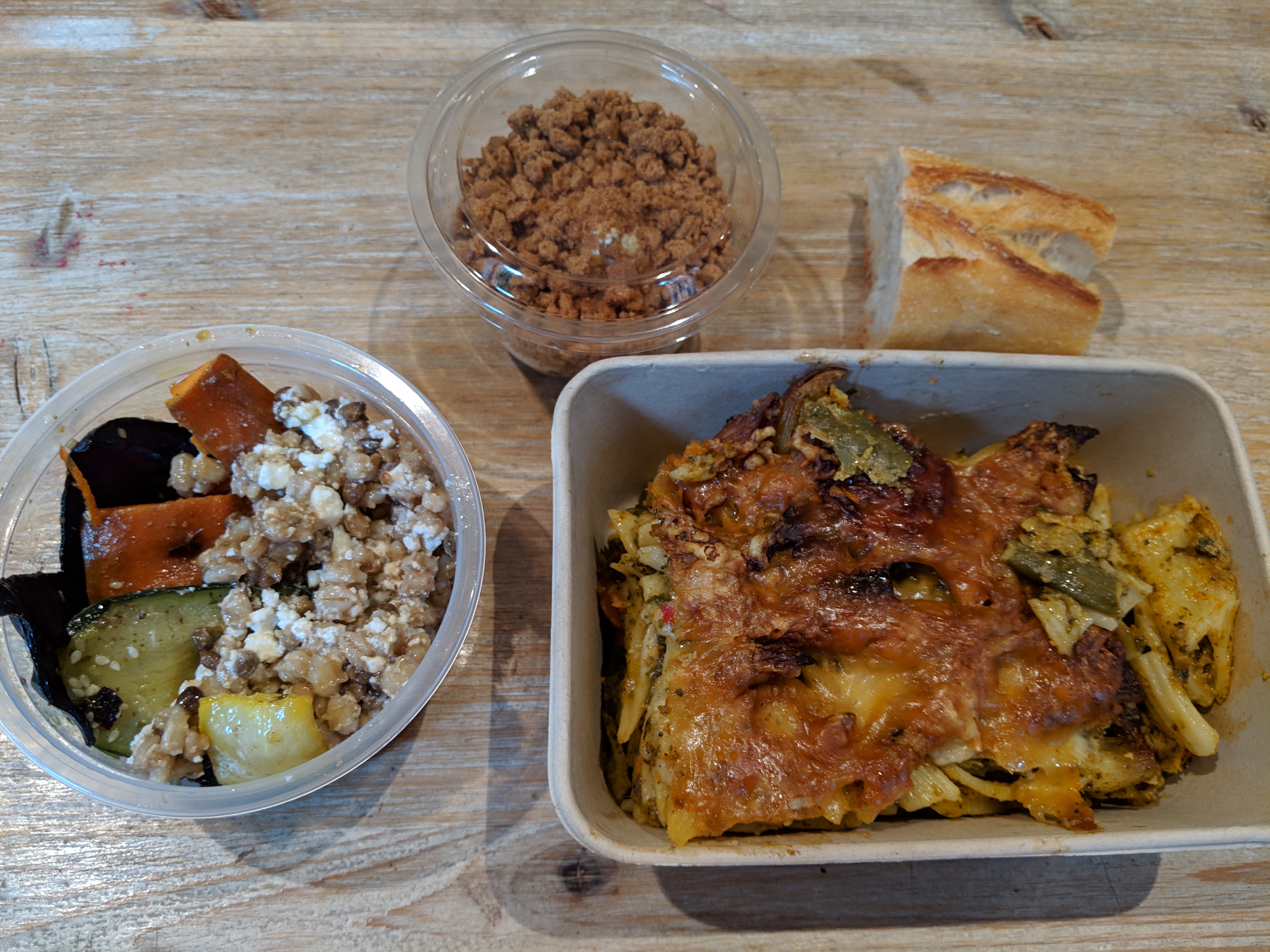 C'est délicieux! J'ai pris à deux reprises le gratin de pâtes/légumes, il était excellent. Il est difficile de rendre un plat aussi simple, notable mais c'était un sans faute. Les légumes étaient très bons, la cuisson idéale et la portion adapté. J'ai pris une formule avec un dessert et le prix était très correct. Idéal pour un midi. Seul petit bémol, j'ai ajouté un jus détox (qui était aussi excellent) mais dont j'ai trouvé le prix un peu élévé (4 €). C'est une très bonne adresse.