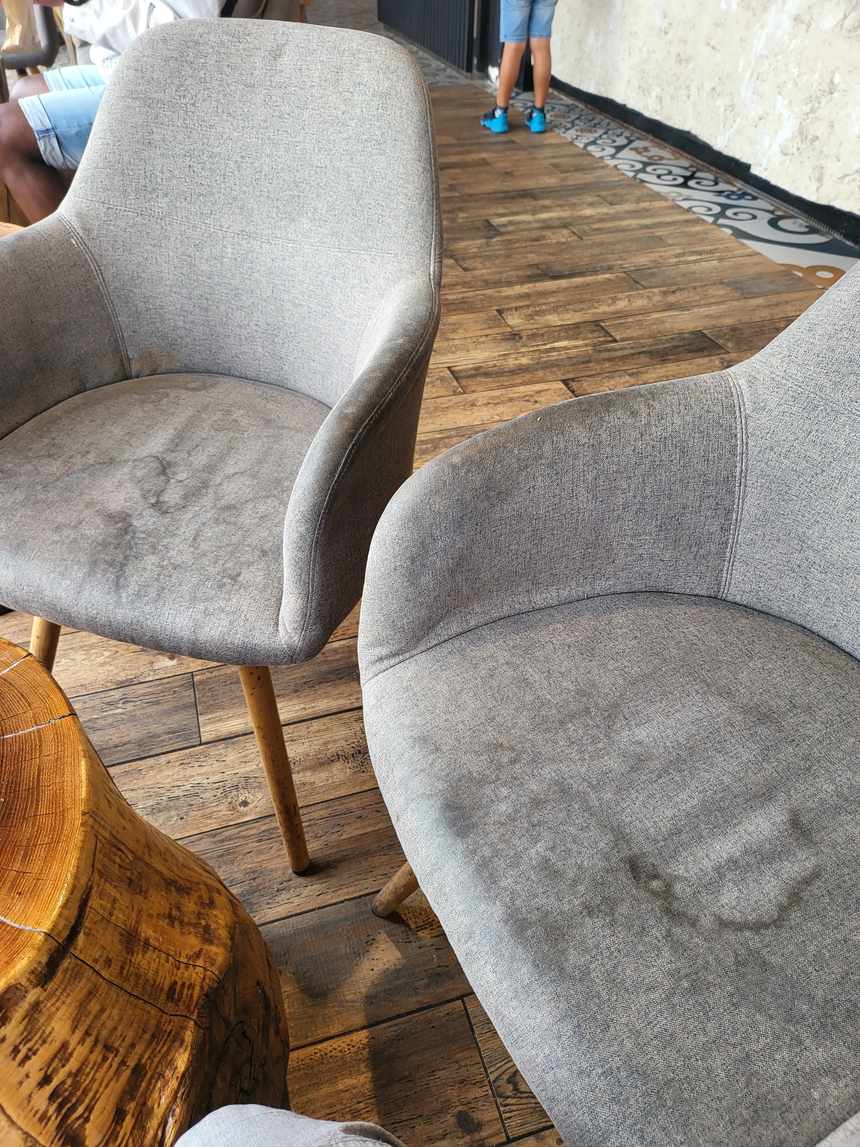 Bonjour Pour commencer par le positif Le jus orange est tres bon..la croissanterie Aussi..le café Richard est bon Par contre la proprete laisse a desirer..😱🤨🤔au pieds Des fauteuil c'est vraiment pas propre cf photo Seules Les tables sont nettoyees alors qu en deux clients IL est possible de passe au moins le balai...la salle nest pas pleine Dommage pour ce point