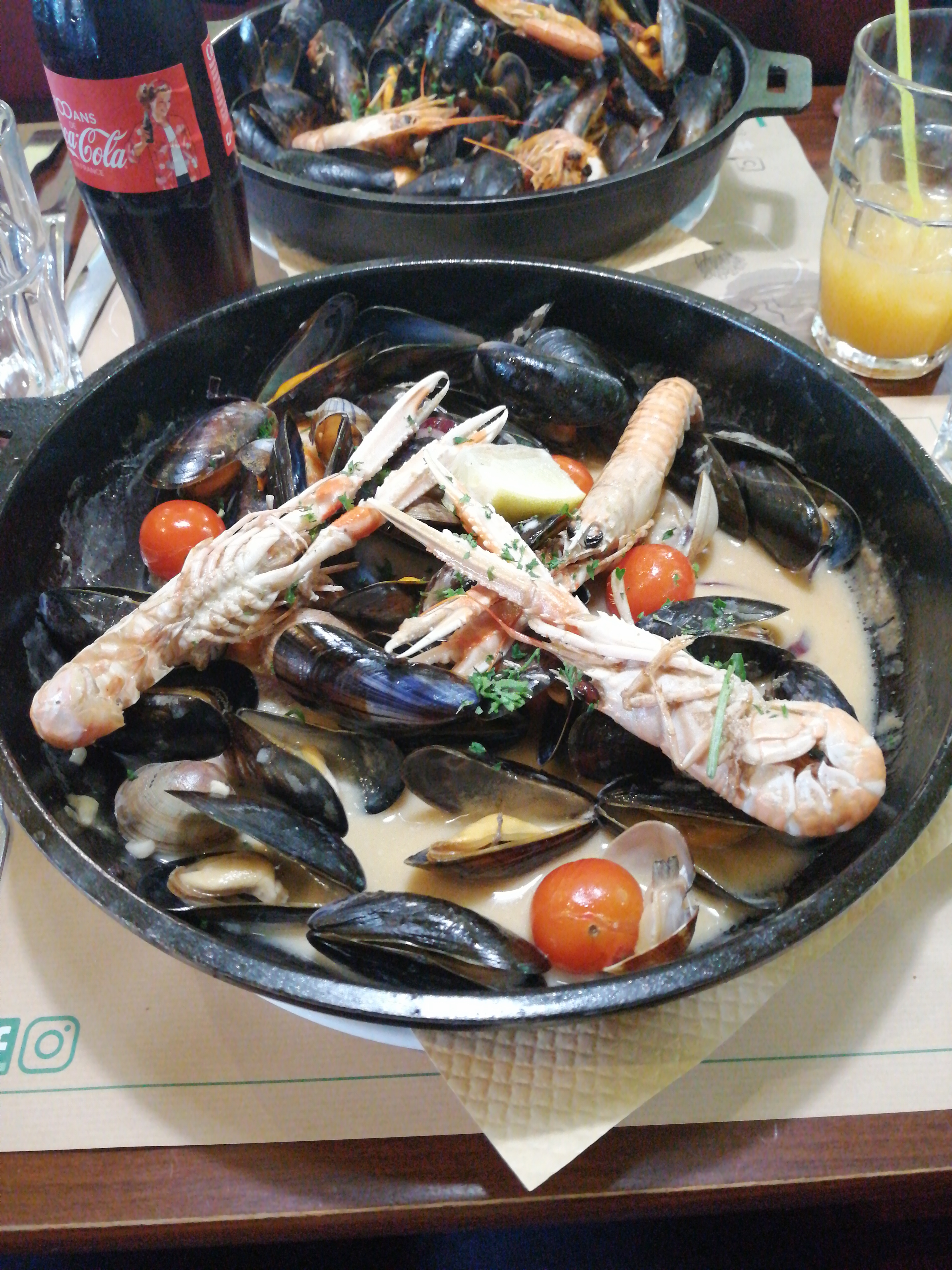 Un agréable moment dans ce restaurant accompagné de ma fille. Menu : Un cocktail sans alcool et des tartines gratinées avec des crevettes et des frites. Une cassolette de moules aux gambas et encornet pour ma fille et pour moi une cassolette de moules et langoustines avec du riz accompagné d'un verre de vin blanc. Un super plat très copieux et très bon. Une gaufre liégeoise en dessert et une crème brûlée.😋 Restaurant que je recommande, accueille chaleureux et le personnel attentif.👍