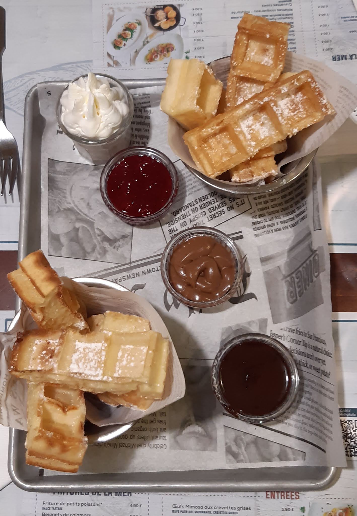 On reste sur sa faim, très petite portion que ce soit au niveau des moules (beaucoup sont fermées) qu'au niveau des frites qui sont bonnes...dommage. La gaufre au chocolat à compensé on est resté sur sa faim