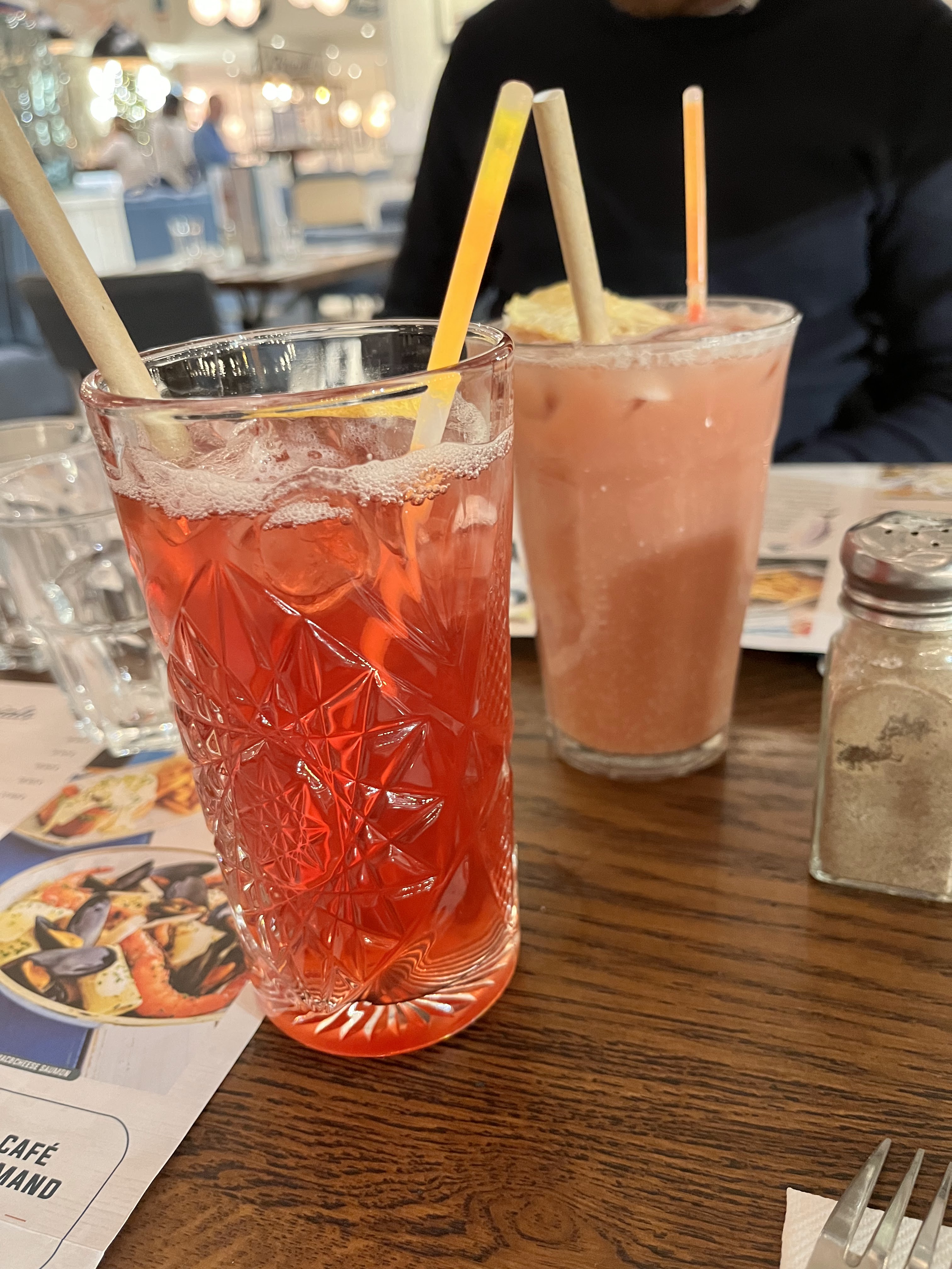 On m’avait déjà dis que ce n’était pas un resto conseiller bah j’aurais du écouter… Le cocktail beaucoup beaucoup trop alcoolisé je sentais plus la vodka que le fruit j’en étais malade L’apéritif étais bon avec les boulettes de fromage mais par contre le prix ? 12,90€ ! Bref… Ensuite le plat moi j’ai pris un Burger de poisson qui m’a retourner l’estomac j’en étais malade… Le plat de mon conjoint lui étais froid est fade Pour le dessert une gaufre chantilly, glace vanille avec sauce chocolat… bah 8€ pour une gaufre pas cuite et froide bah c’est sure que sa vous fait fou un froid. Parlons de la salle les tables sont très serrer les un des autres donc pas d’intimité, en étant collé contre la fenêtre oui en plus mon conjoint ces pris l’affiche qui étais coller dessus. Le seul bon point que je peux accorder c’est la gentillesse de serveuse et la déco sympas mais froide.. Première fois que je suis venue et la dernière aussi