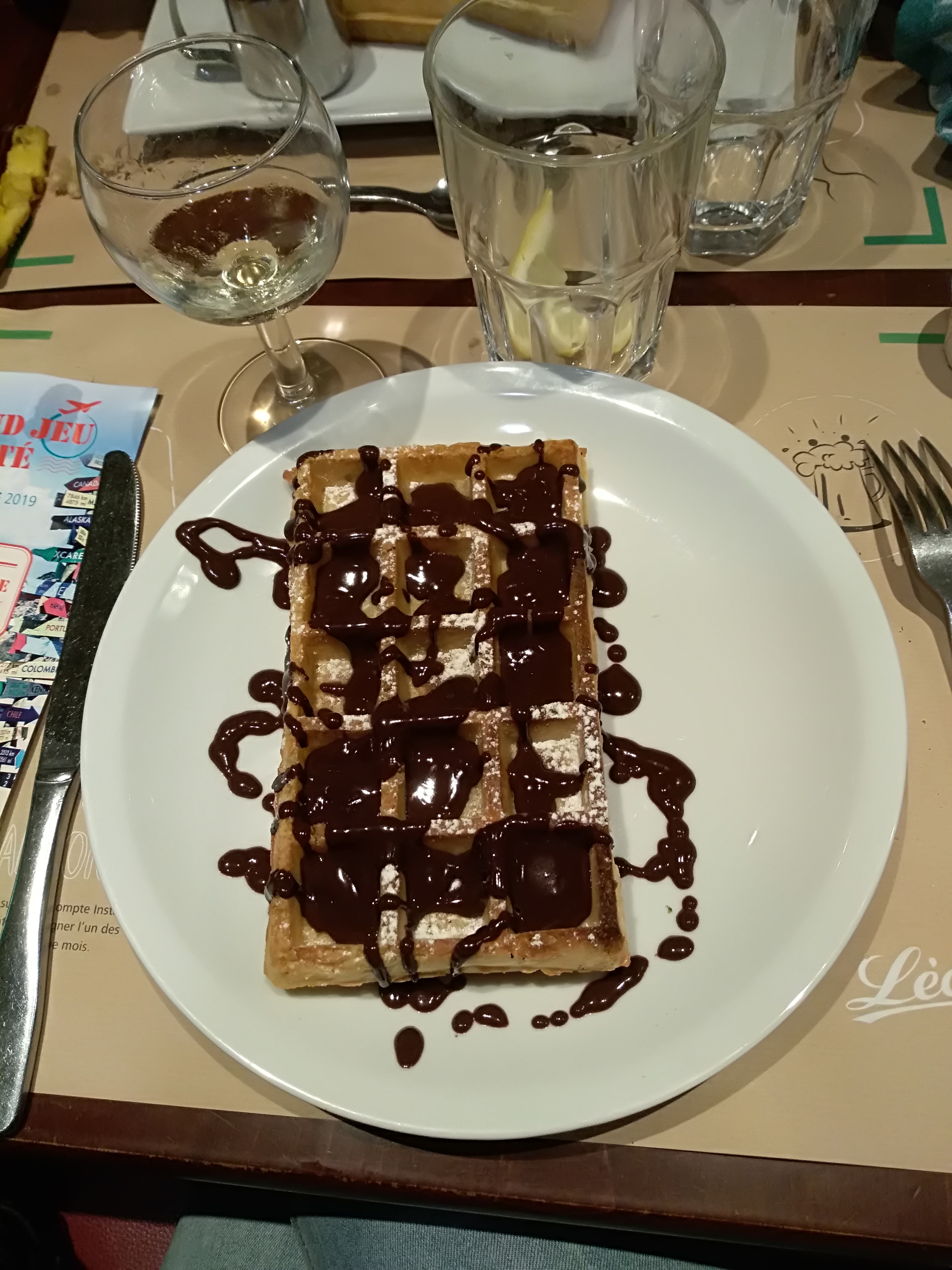 Gaufre de la veille en dessert, le serveur nous indique qu’il « sait » mais ne nous le précise pas avant de nous l’apporter bien entendu. A 8 euros la gaufre, c’est fort. Sinon service peu chaleureux et le reste de repas ok sans plus.