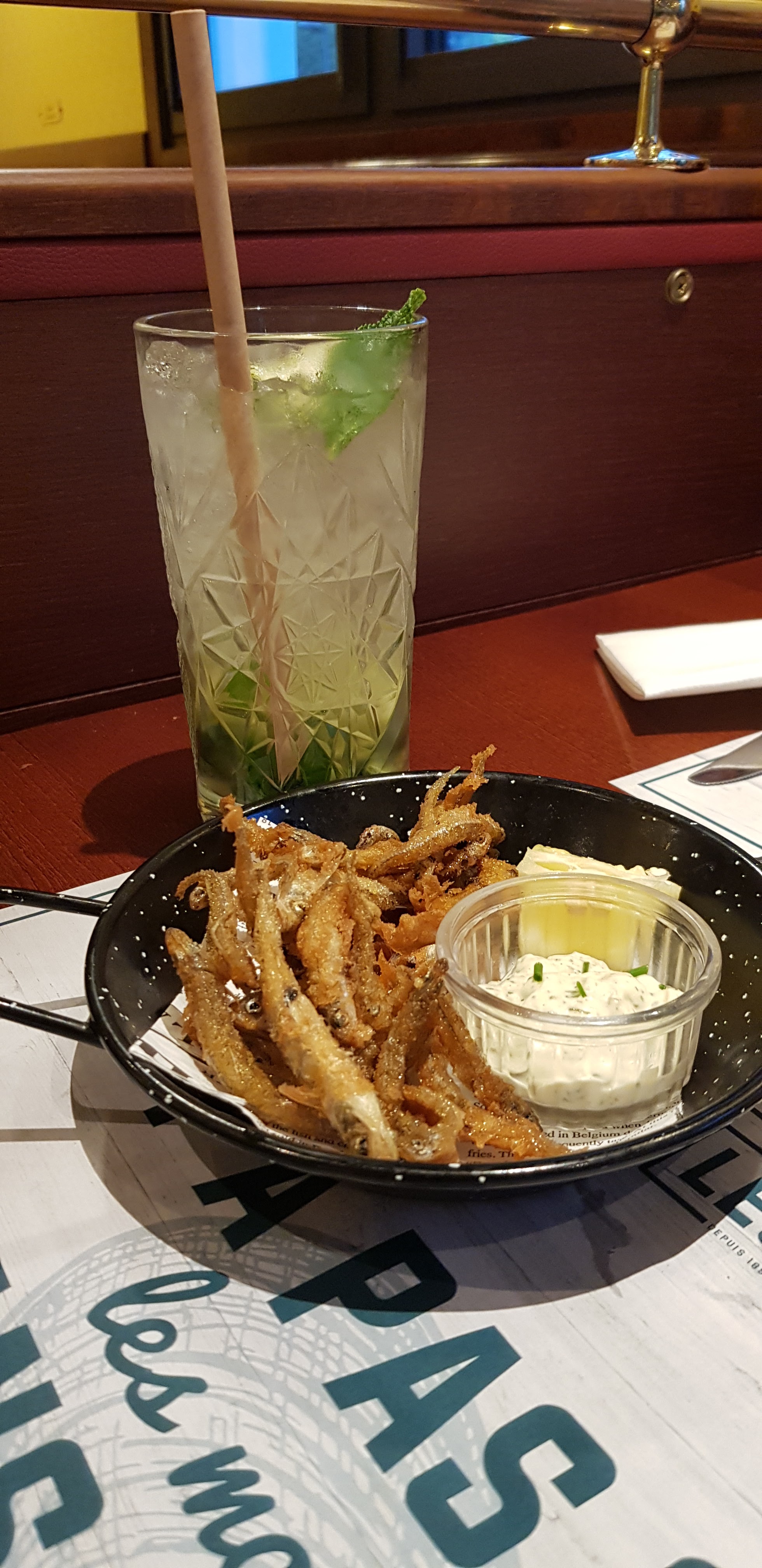 Bien dommage que la liste des apéritifs ce trouve en fin de menues par contre au début c'est les cocktail et pour les moules espagnole excellente mes il manque des cuillères pour la sauce