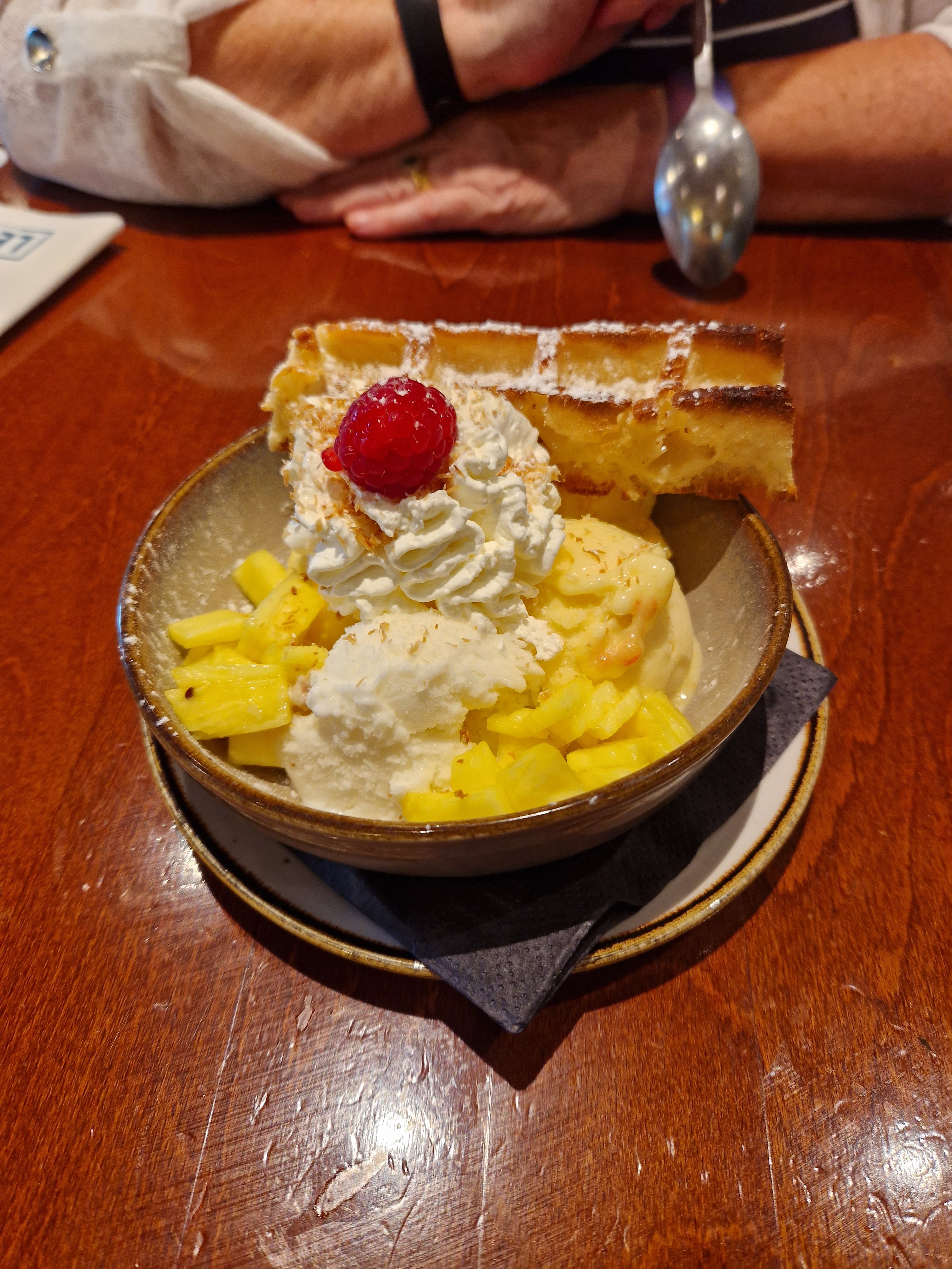 Lieu très sympa, notre serveuse a était très serviable et gentille. Les moules sont très bonne, et la gaufre de Bruxelles un régal, une petite déception par contre pour la salade de chèvre un peu trop basique. Nous avons mangé un jeudi soir.