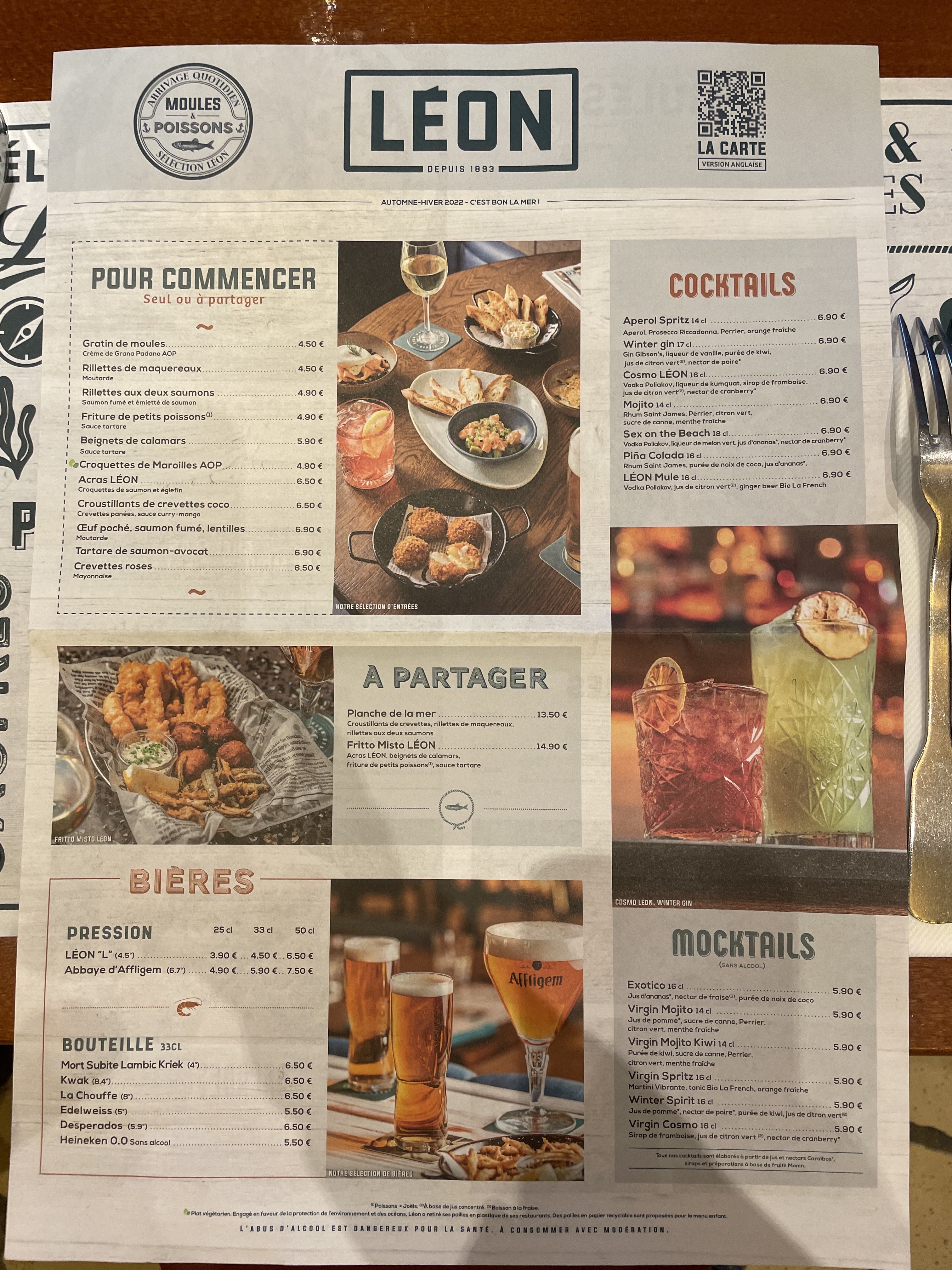 cela fait 5 fois que j'y vais, j'aime beaucoup la décoration vraiment sympa, j'y mange toujours bien, les prix sont raisonnables, la carte propose beaucoup de bonne choses,il y en a pour tout les goûts ! burger, pâtes, paella, moules, etc. la bière Léon est délicieuse, je pense juste que la sauce des moules est vraiment trop liquide, et manque de sauce épaisse, le service est toujours bien