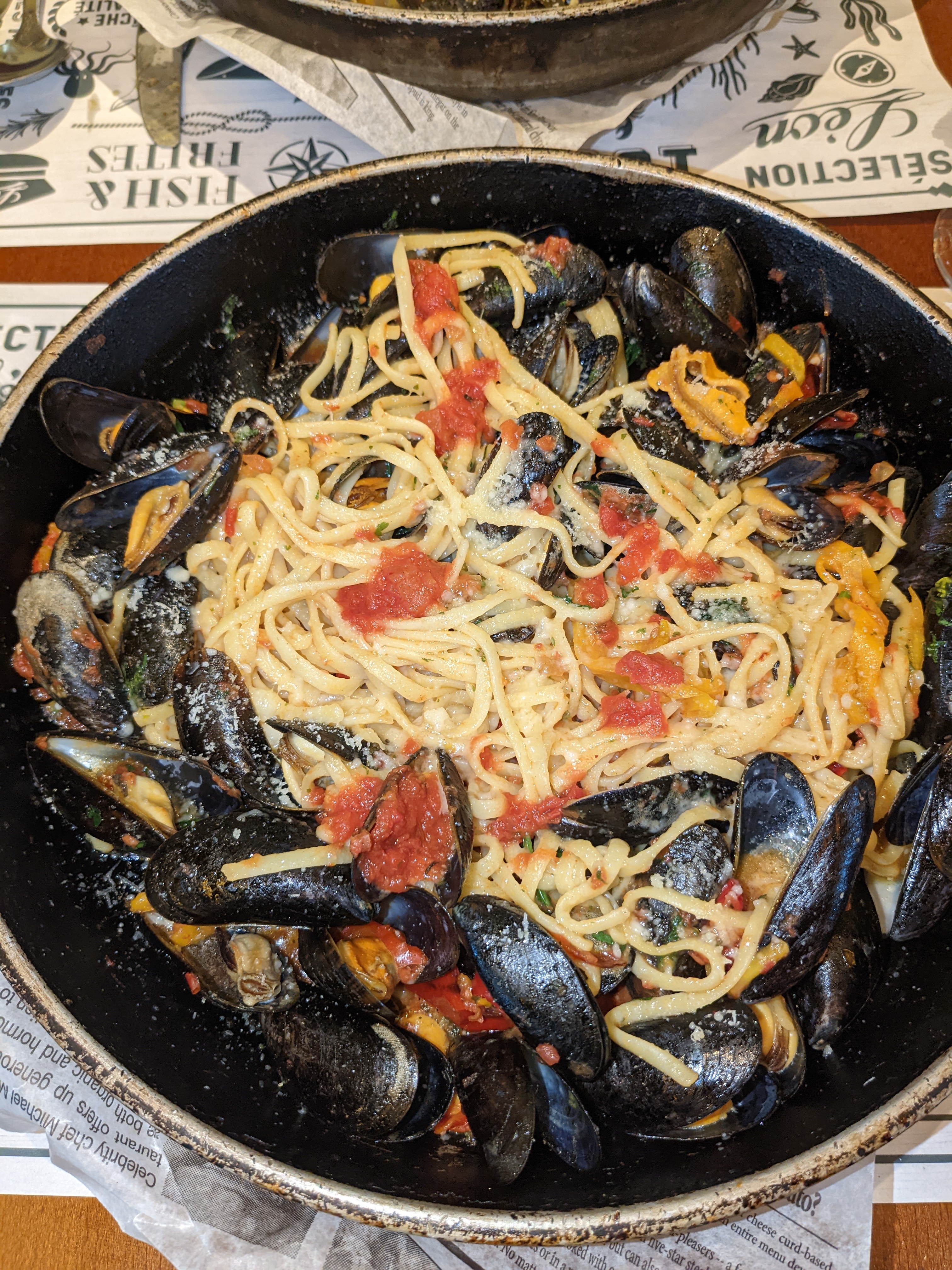 Les moules étaient excellentes 👍 Le pauvre serveur était très pro mais malheureusement un peu seul, il a parfaitement su gérer et s'excusait, mais il n'était pas du tout responsable.