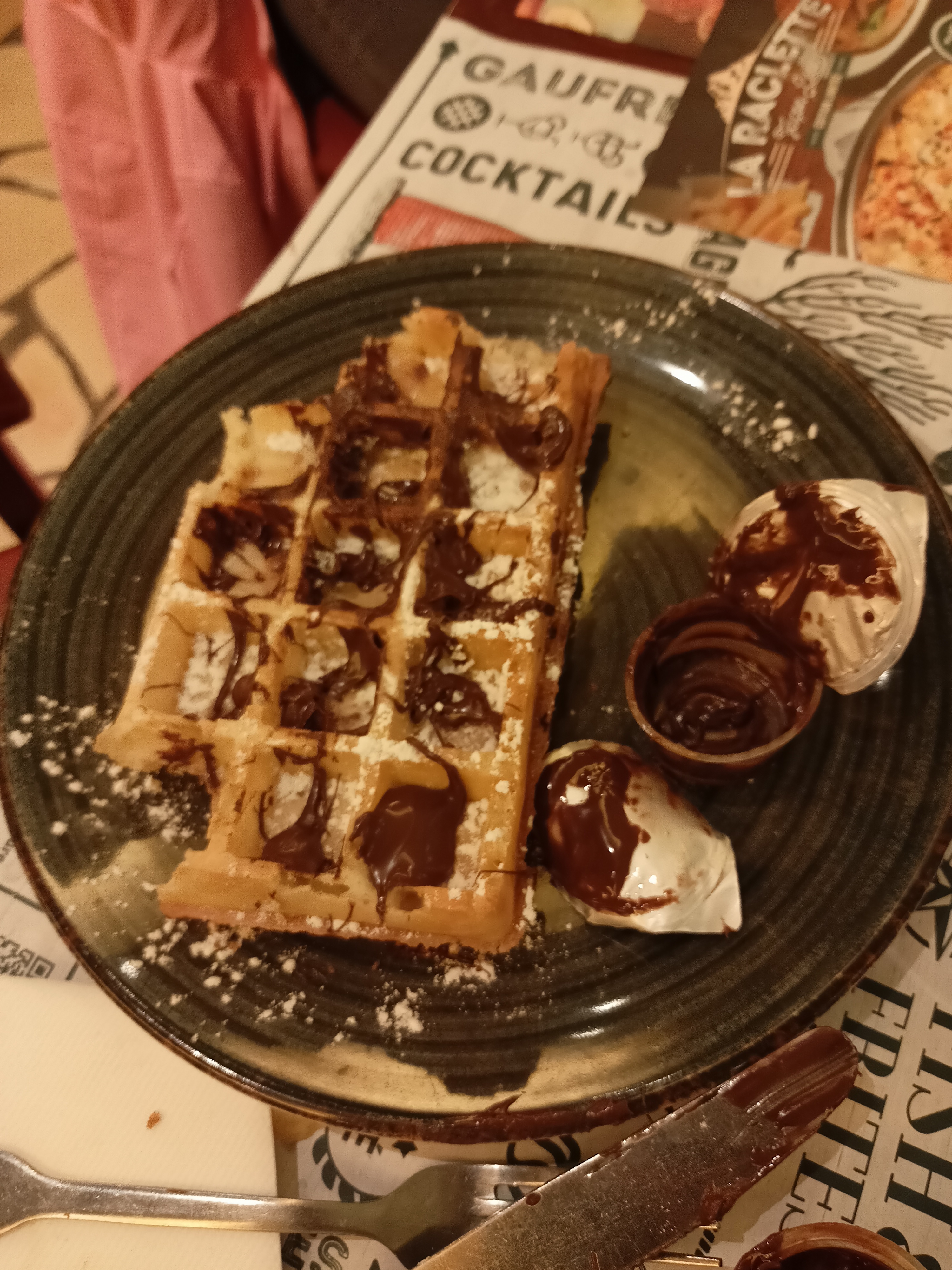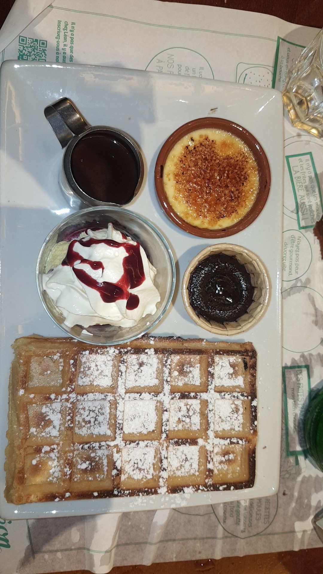 Le responsable ne décroche pas un sourire, mal aimable. heureusement que le personnel est compétent. Malgré leur peu de sourire ms quand même. Verres et couverts sales. Gaufre surgelées pas assez cuites vraiment pas bonnes. Pour une spécialité, on peut mieux faire.... Nous avons pris les moules montagnardes, un vrai délice malgré une photo de présentation plutôt mensongère. En effet, il n'y avait pas du tout la même quantité de fromage annoncée. Mais tant mieux car cela aurait été écoeurant. Prix élevé je trouve pour la quantité dans l'assiette.