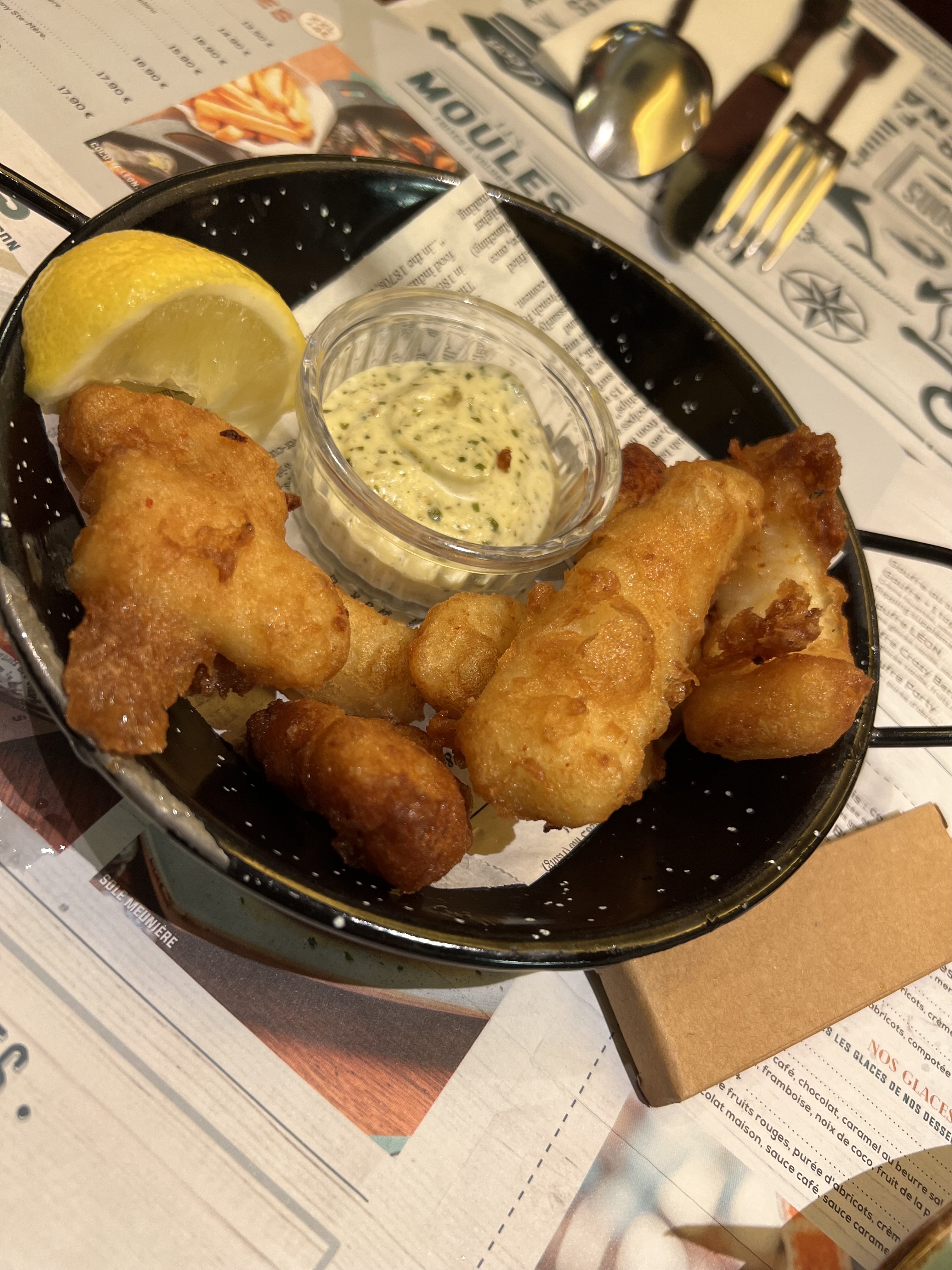 Léon ça rime avec poisson ! Serveur charmant et très agréable et professionnel. Menu enfant très bon, moules au top, fish and ship au top. Planches apéritives et desserts au top aussi. Plats copieux, rapport qualité prix très bien