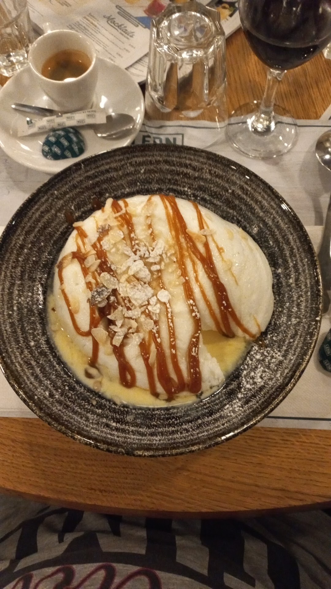 Un peu déçue du dessert ma profiterole etait encore froide et le chocolat que j'adore normalement était trop fort voir pour un pourcentage moins élevé serait intéressant. Quand a l'accueil sympa.