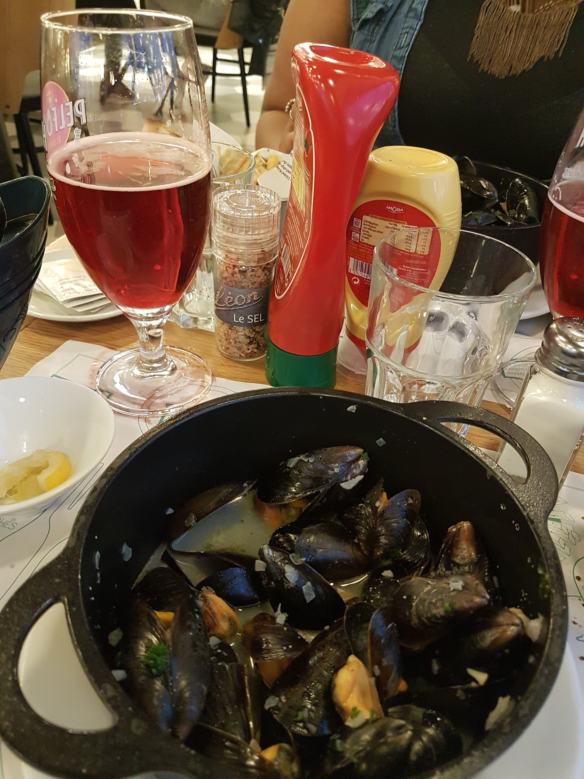Restaurant chaleureux. Néanmoins après avoir mangé en entrée un tartare saumon avocat douteux, j'ai vomis la nuit qui a suivi 🙃. Je ne pense quand-même pas qu'il s'agisse des moules façon moutarde