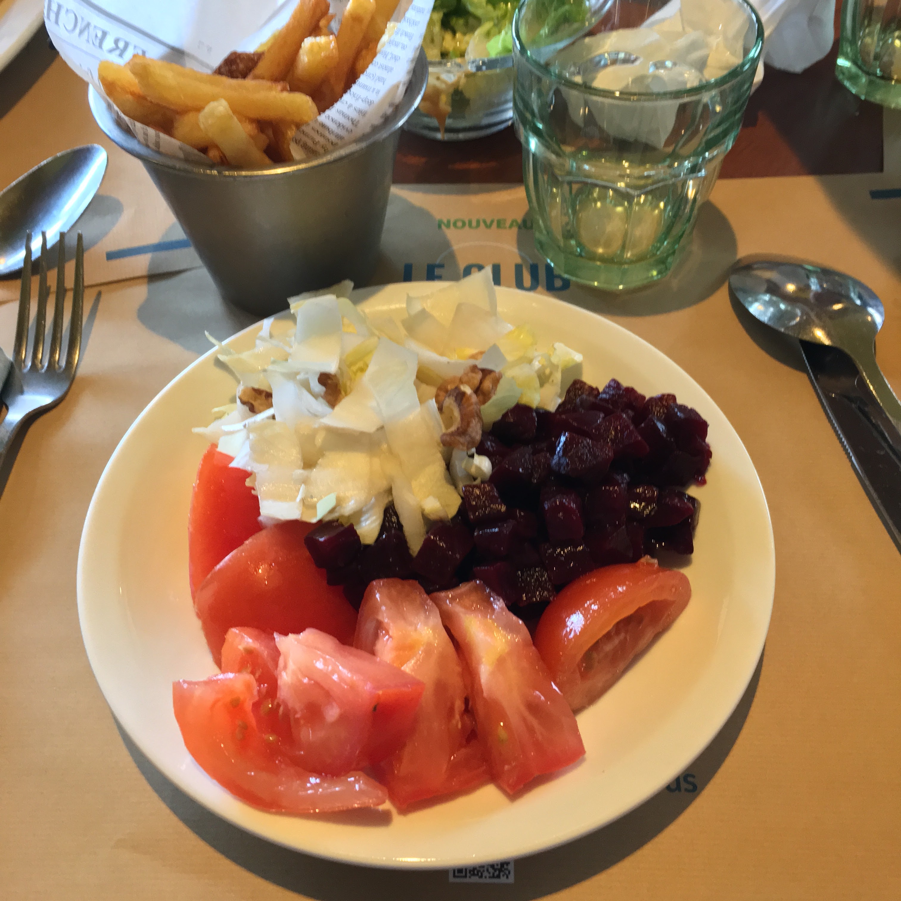 3ème visite dans ce restaurant le 05/11/21. Le service était parfait cette fois. Nous sommes arrivés vers 14h30, (à savoir que la cuisine ferme à 15h). Le service était rapide. J'ai choisi le veggie bowl qui est désormais au menu. Un mélange chaud et froid avec du quinoa, des pois chiches, tomates, guacamole, salade etc. J'ai oublié de prendre une photo du plat, j'avais faim et c'était délicieux! 2eme visite dans ce restaurant aujourd’hui le 23/12/2019. Il y avait du monde et le service n’était pas rapide. Nous avons pris juste le plat, sans apéritif ni entrée. Comme la dernière fois nous étions sur le trajet pour aller dans le Nord. Nous sommes parti après 1h10 sans dessert car le service était trop long. Il nous reste encore 3h de route. Dommage, les employés étaient serviable et aimable, leur nombre n’étaient simplement pas adapté au rush. Il n’y a pas grand salade végétarienne, mais un buffet avec un choix de crudités. De passage à Chartres sur notre route pour rentrer en Poitou Charentes. Nous nous sommes arrêtés pour manger le midi. Il n’y avait pas de plats végétariens ou Végane sur le menu pour moi, pour un restaurant qui se spécialise en fruits de mer ça s’entend. Du coup j’ai demandé une salade sans fromage ni poisson ni viande. Au retour de la serveuse, elle m’a informé qu’ils ne pouvaient pas me préparer une salade, cependant on m’a proposé de me servir ( à volonté) au buffet, ce que j’ai fait et j’ai commandé une portion de frites. Je me suis composé une assiette avec de la salade, du melon, du pastèque, des cœurs d’artichauts et des cubes de betteraves. J’avais demandé s’il était possible d’avoir des tomates en plus, ont m’avait dit oui, mais ça c’est pas fait. J’ai très bien mangé, les aliments du bar à salade était frais et les fruits d’été un régalé. Bon dégustation. NewLifeKarma.