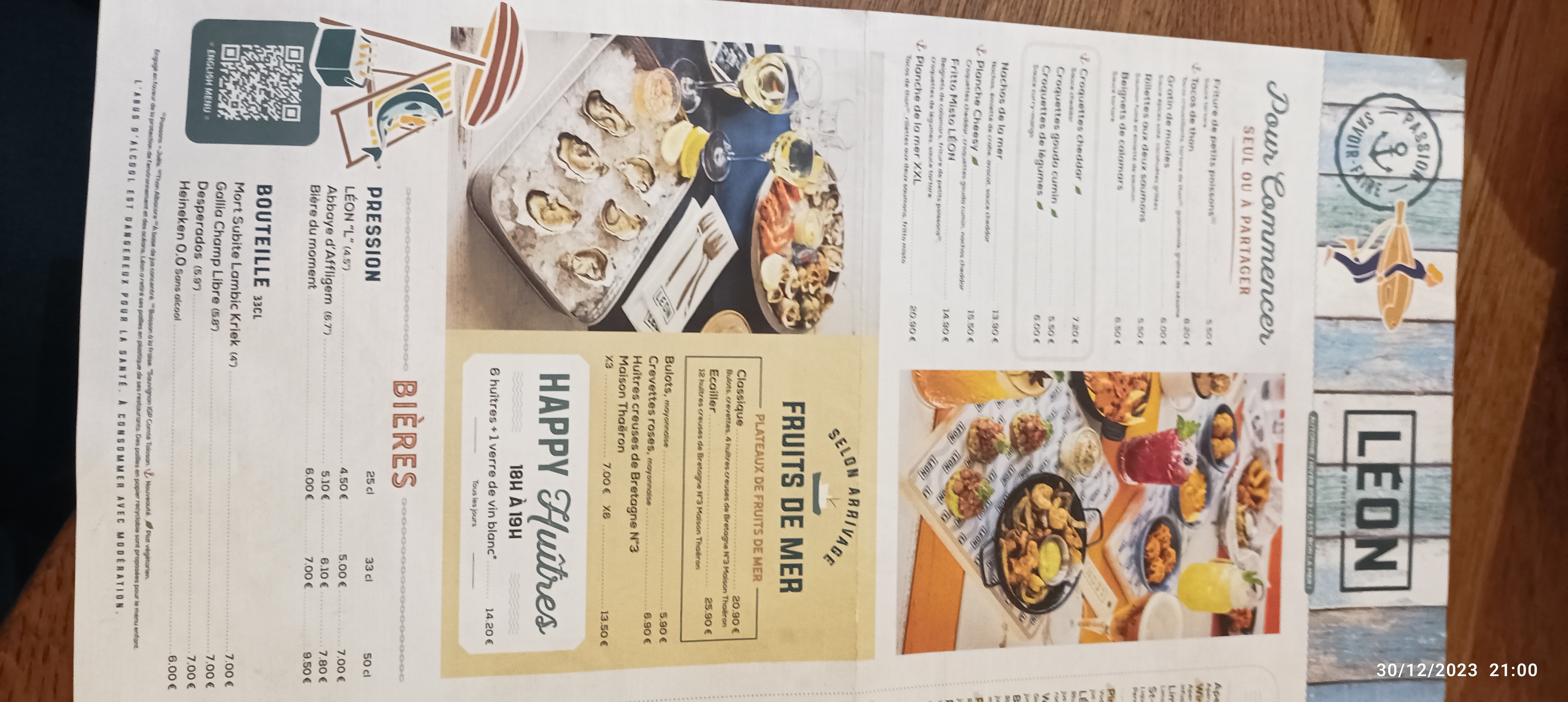 Je ne sais pas par quoi commencer mais une chose est sûre c'est qu'ils ne nous reverront jamais. Pour une 1ère visite on a eu faim.... car on ne nous a jamais servi. Nous passons notre commande apéritifs avec fritures. Alors pour mon compagnon une suze qui avait plutôt le goût d'une gentiane mais au prix de la suze. Moi un martini blanc sûrement coupé avec de l'eau et un drôle de goût. Toujours pas de fritures à l'horizon. Notre serveur passe et repasse sans même nous calculer. D'autres clients arrivent.... L'heure tourne...... Au bout d'une heure et demie d'attente, le serveur amène un petit seau et là je lui pose la question à savoir où est notre friture ? Sûrement parti la pêcher. La réponse désolé, nous avons eu un problème avec l'ordinateur donc il faut patienter. Pardon ? Et si je ne demande pas, on ne nous dit rien. Je regarde autour de nous, les clients arrivés après nous en sont au dessert. La moutarde me monte au nez. Je me lève et je vais voir la manager. Je lui demande si nous sommes transparents au point de nous zapper. Non mais attendez on s'en occupe. J'ai répondu, ne vous occupez de rien, annulez notre commande, on se casse................................ Nous étions vénères. Et on s'est barrer. Quand je vois les commentaires positifs j'hallucine. FUYEZ LEON......... Nous avions la dalle et nous avons trouvé juste en face un wok. Alors là je peux vous le conseiller. Absolument impeccable. Je trouve bizarre que les commentaires positifs ont une réponse de la part de Léon et que les négatifs n'ont rien. Désolée pour mon avis qui est plutôt un roman.