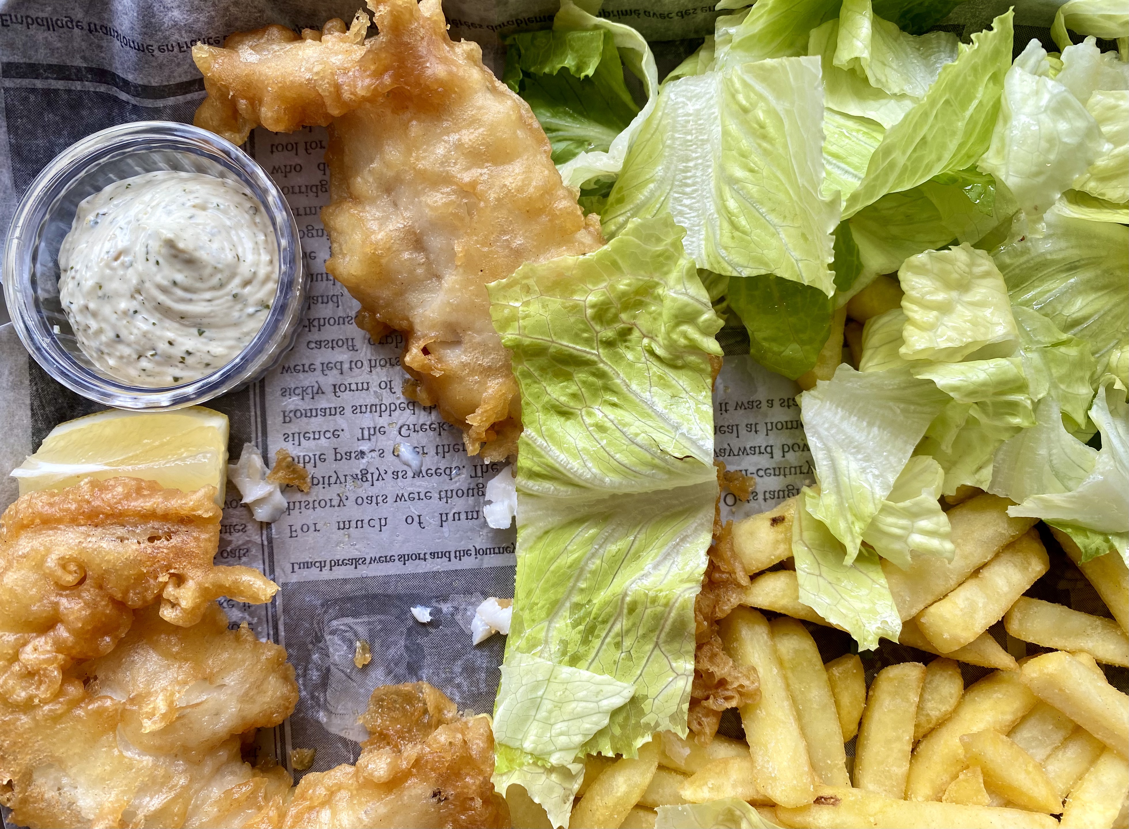 Dernière fois que j’ai commandé à emporter, autant au restaurant les quantités sont correctes mais là 10 frites se battaient en duels le Burger de saumon n’était pas fameux et les fish and chips d’eglefin bourré d’arêtes…sans compter qu’il est impossible de prendre un menu enfant à emporter. La soirée fût parfaite ! Poisson immangeable.