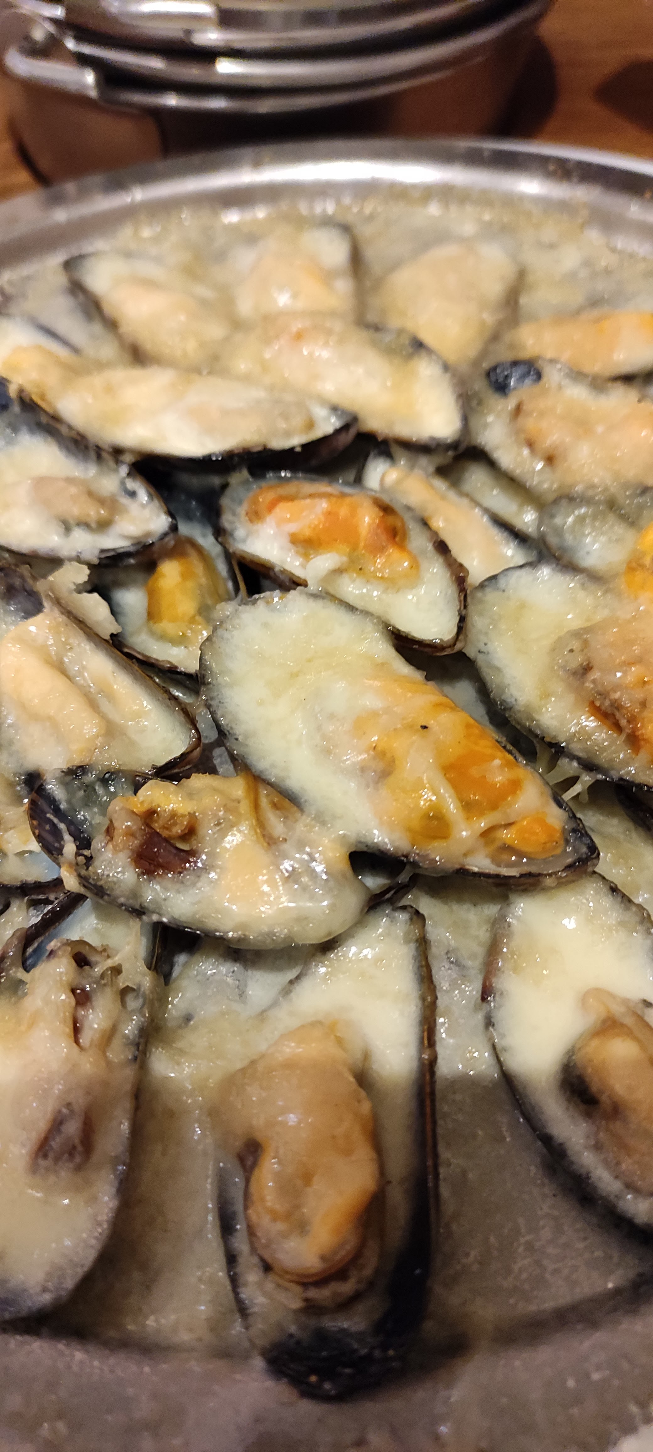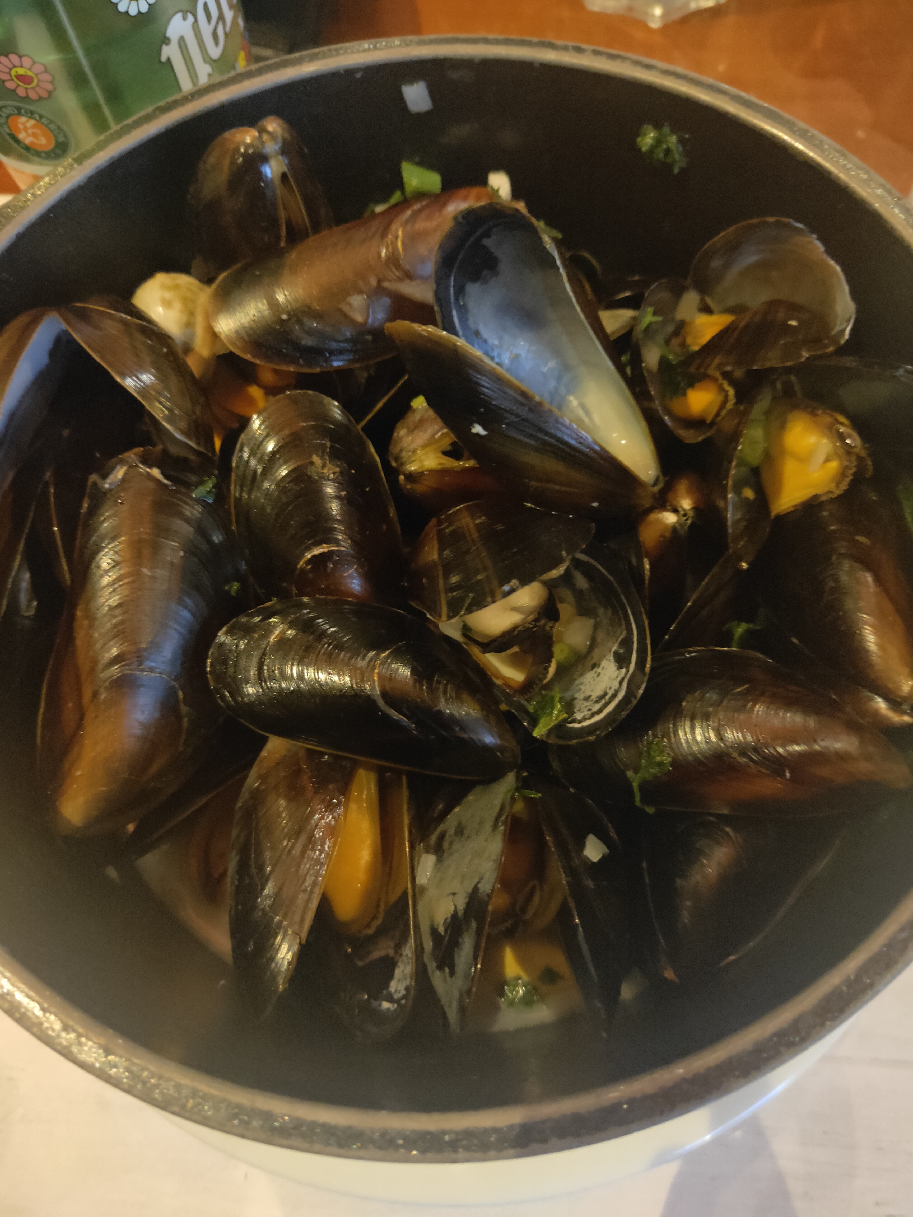 Restaurant visité aujourd'hui. Beaucoup de petites moules. La cocotte de moules pourrait être bien mieux garnie. C'est plutôt moyen.