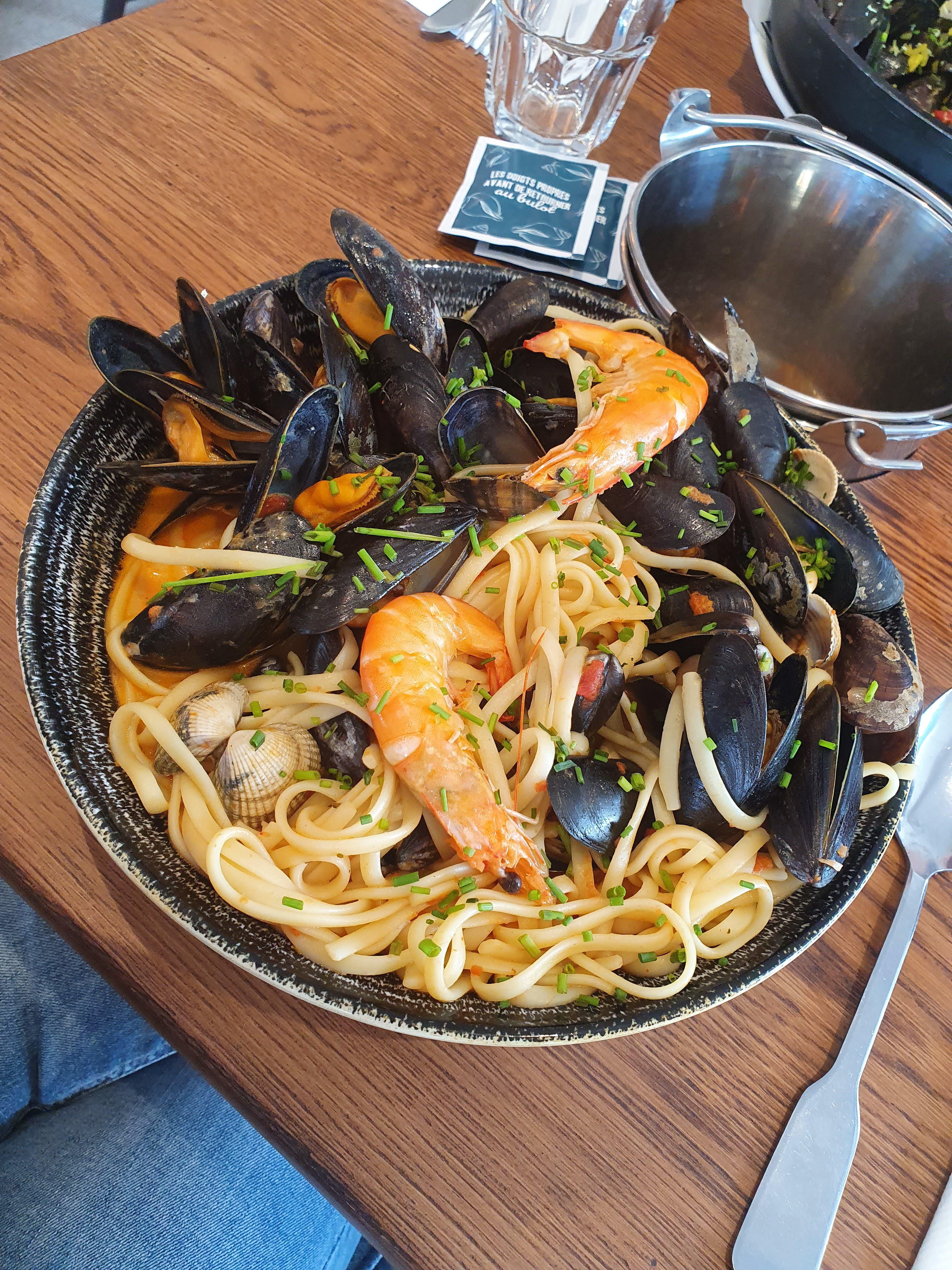 Le restaurant n'etait qu'ouvert aux 2 tiers car manque de serveurs. Du coup, nous avons attendu 20 minutes pour une table car nous n'avions pas réservé. Le repas etait très bon même si ma femme et moi avions mangé toutes nos moules AVANT d'avoir nos frites oubliées 2 fois. Ainsi sans rien demander pour les désagréments on nous a fait 10% sur l'addition ce qui etait un geste gentil... Le décor a dû être refait il y a peu de temps et nous l'avons trouvé très réussi. Le dessert etait copieux, bon et sympa aussi. Malgré tout nous avons passé un très bon moment!!! L'ambiance un peu brasserie était agréable. Nous y retournerons volontiers pour remanger des moules/frites. Notre fille de 10 ans en tant que spécialiste a trouvé les frites delicieuses... Bon, la prochaine fois nous reserverons avant... Nous avons passé malgré tout un bon moment !!! Je conseille vivement les moules/frites, jamais déçu !