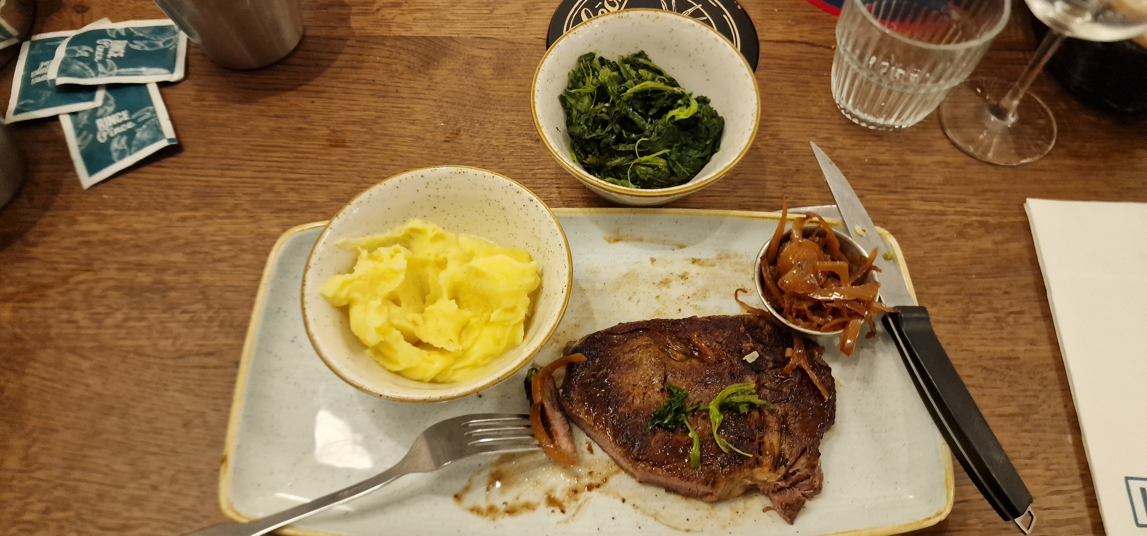 Repas pris ce soir, nous sommes dans une nouvelle ambiance bien lumineuse mais cependant nous sommes collé les uns aux autres. La serveuse fait tomber des couverts au sol et se permet de les ranger comme ci de rien était alors que la salle est pleine... Je n'ose pas imaginer ce qu'ils font en cuisine ou même en salle quand il n'y a pas de clients... Vraiment déçue