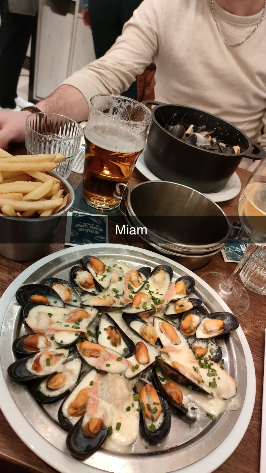 Belle ambiance Les portions de frites et moules sont faibles en dessous des contenants Il n'y a pas de frite à volonté Dommage