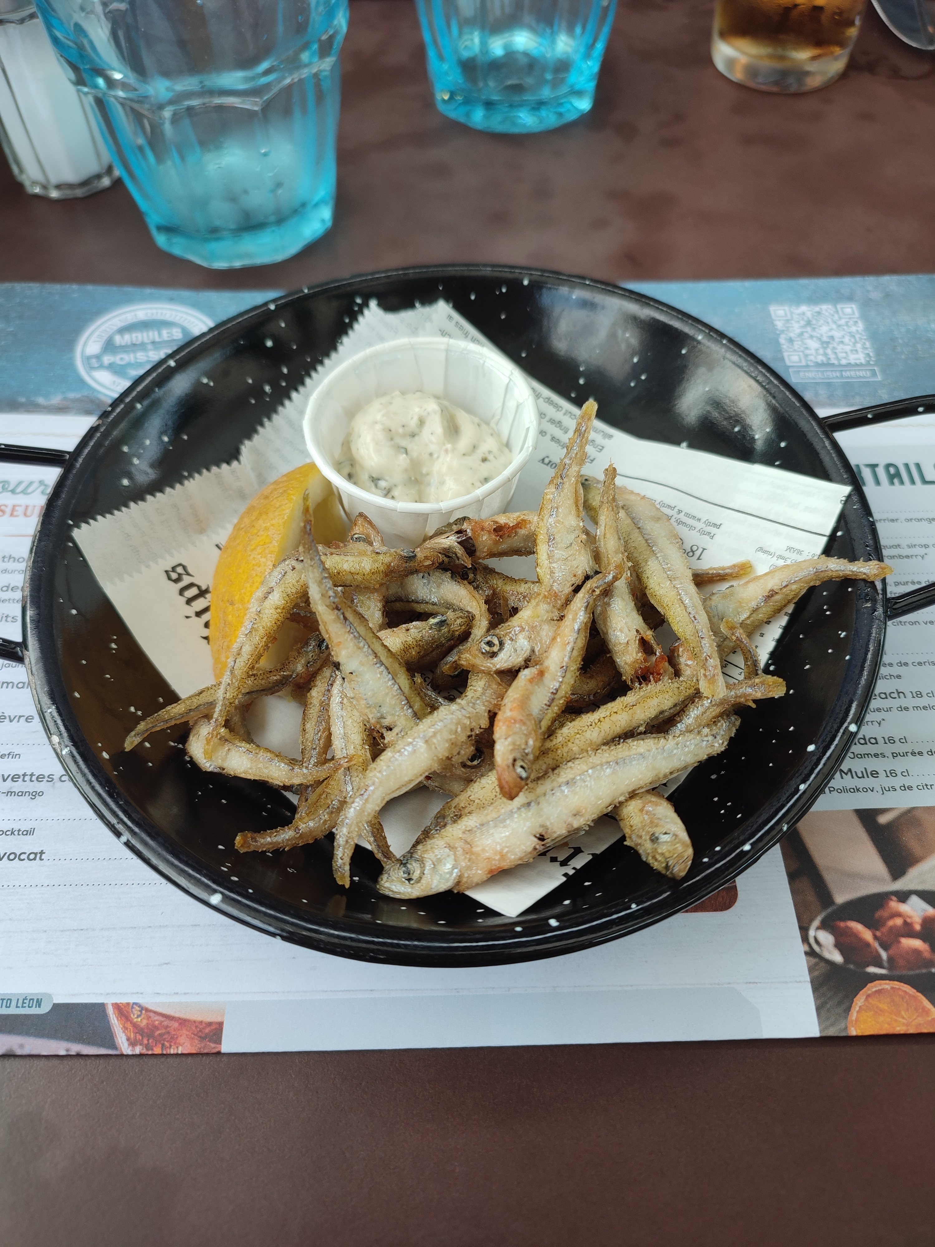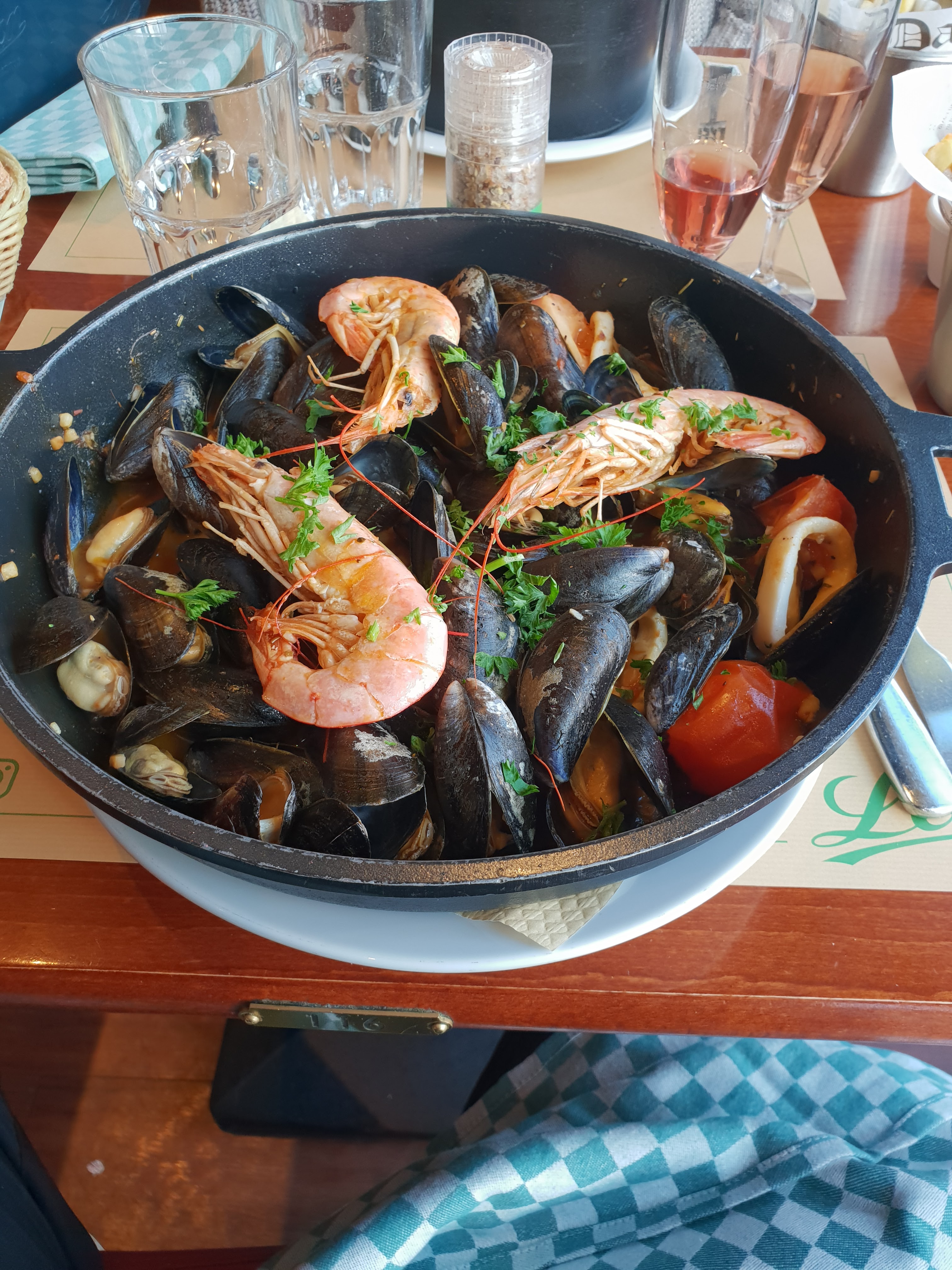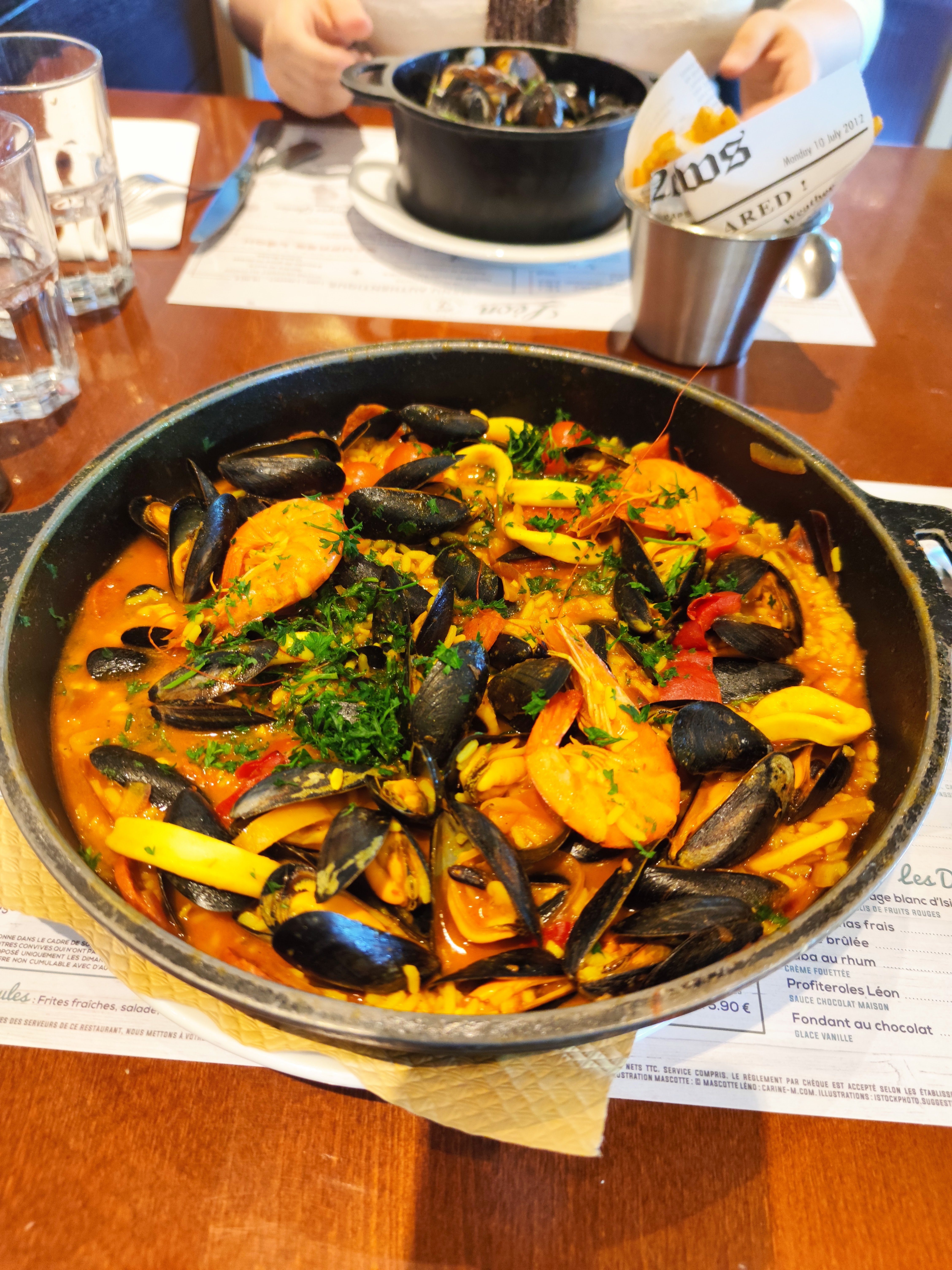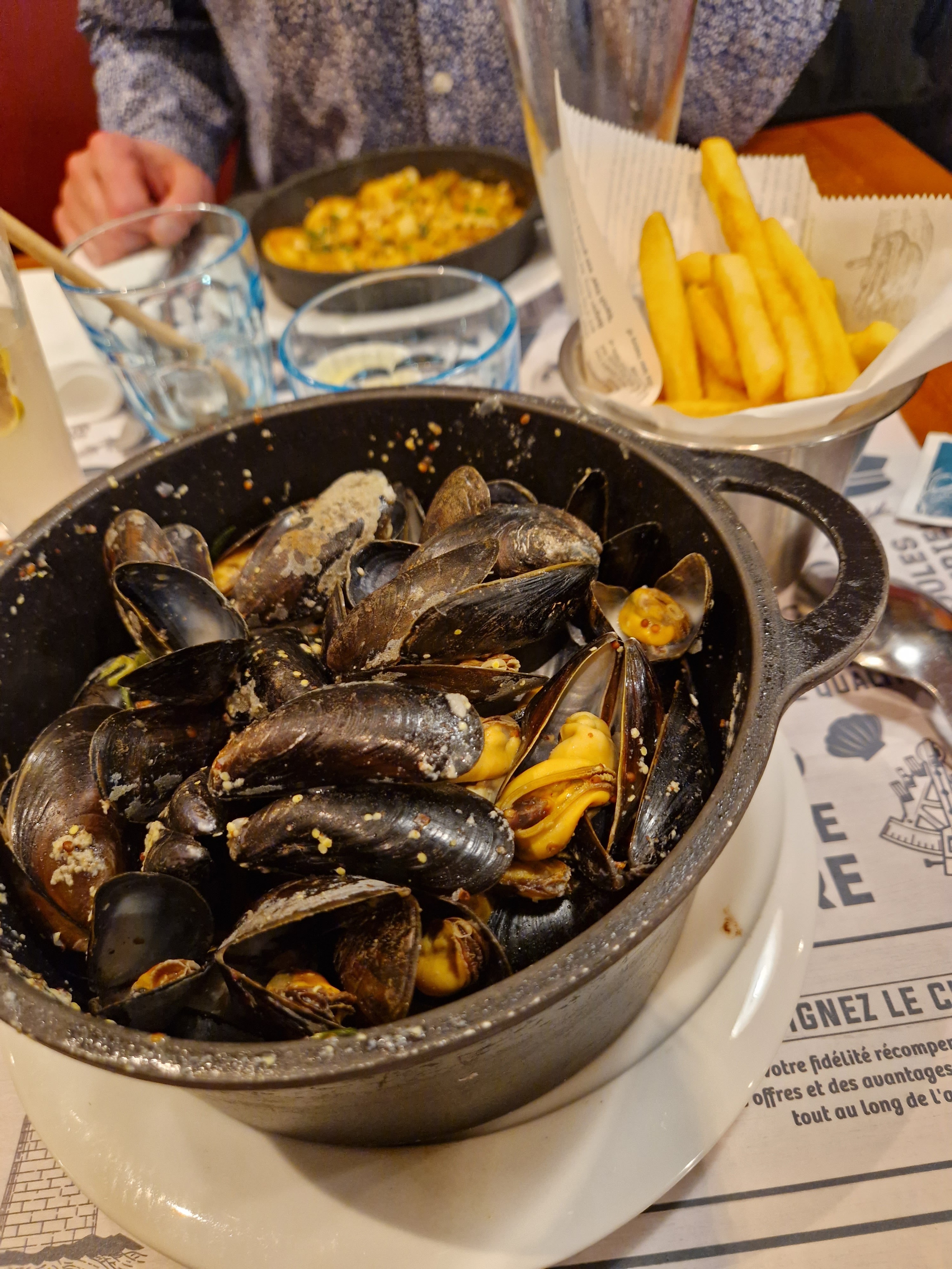 Excellent repas pour 6 personnes, saumon, moules Martinières, moules curry, moules gratinées. En résumé tout le monde à passé un bon moment tout en mangeant bien ! Équipe très sympathique. Merci !