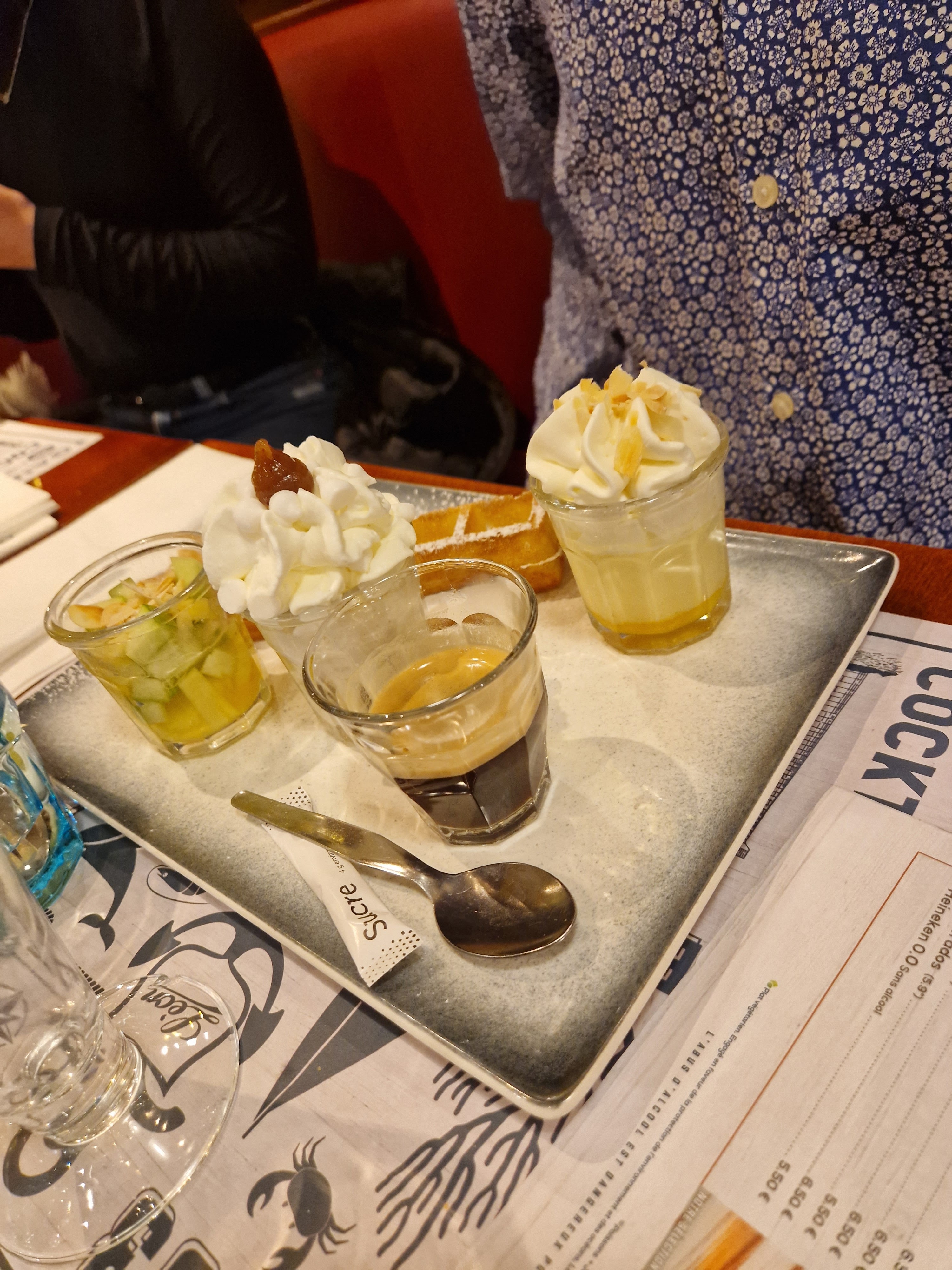 Les moules sont toujours bonnes, cependant au niveau dessert j ai pris une gaufre Léon qui n était même pas tiède. Une autre personne avait commandé des profiteroles dont la pâte était sèche et la glace vanille pleine de cristaux de givre. Par ailleurs les gaufres spéciales épiphanie étaient plutôt écœurantes. Résultat mitigé pour cette fois