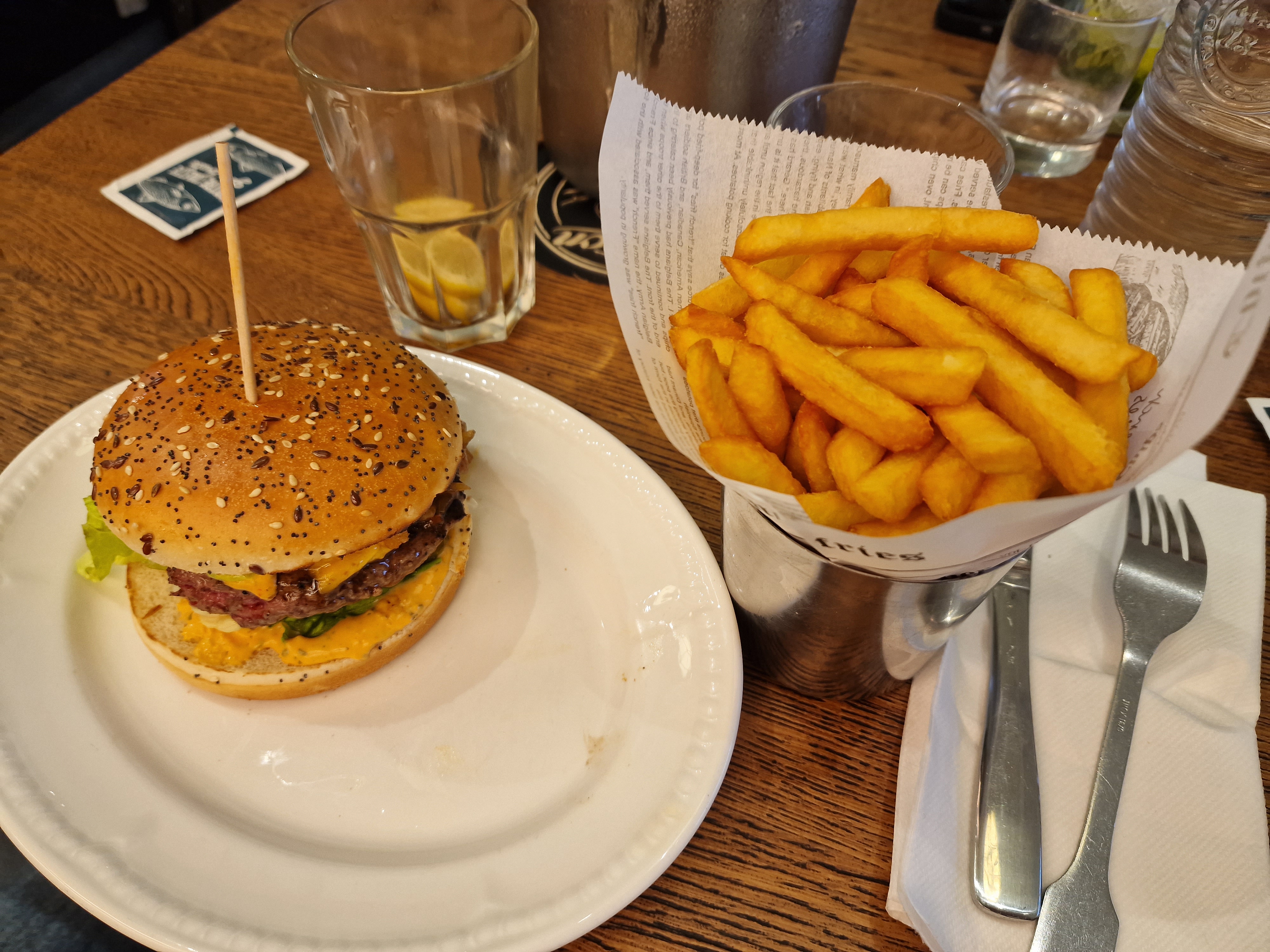 Première visite depuis le passage de Leon de Bruxelles à simplement Leon. La carte a été retravaillé et propose plus de choix ainsi que des desserts plus élaborés. J'ai pris le burger classique qui était vraiment bon, les frites l'étaient aussi mais j'ai été un peu déçu qu'elles arrivent déjà tièdes. En dessert, j'ai prix l'île flottante XXL (qui l'est réellement !) avec un coulis caramel. Dans l'ensemble c'était vraiment bien !