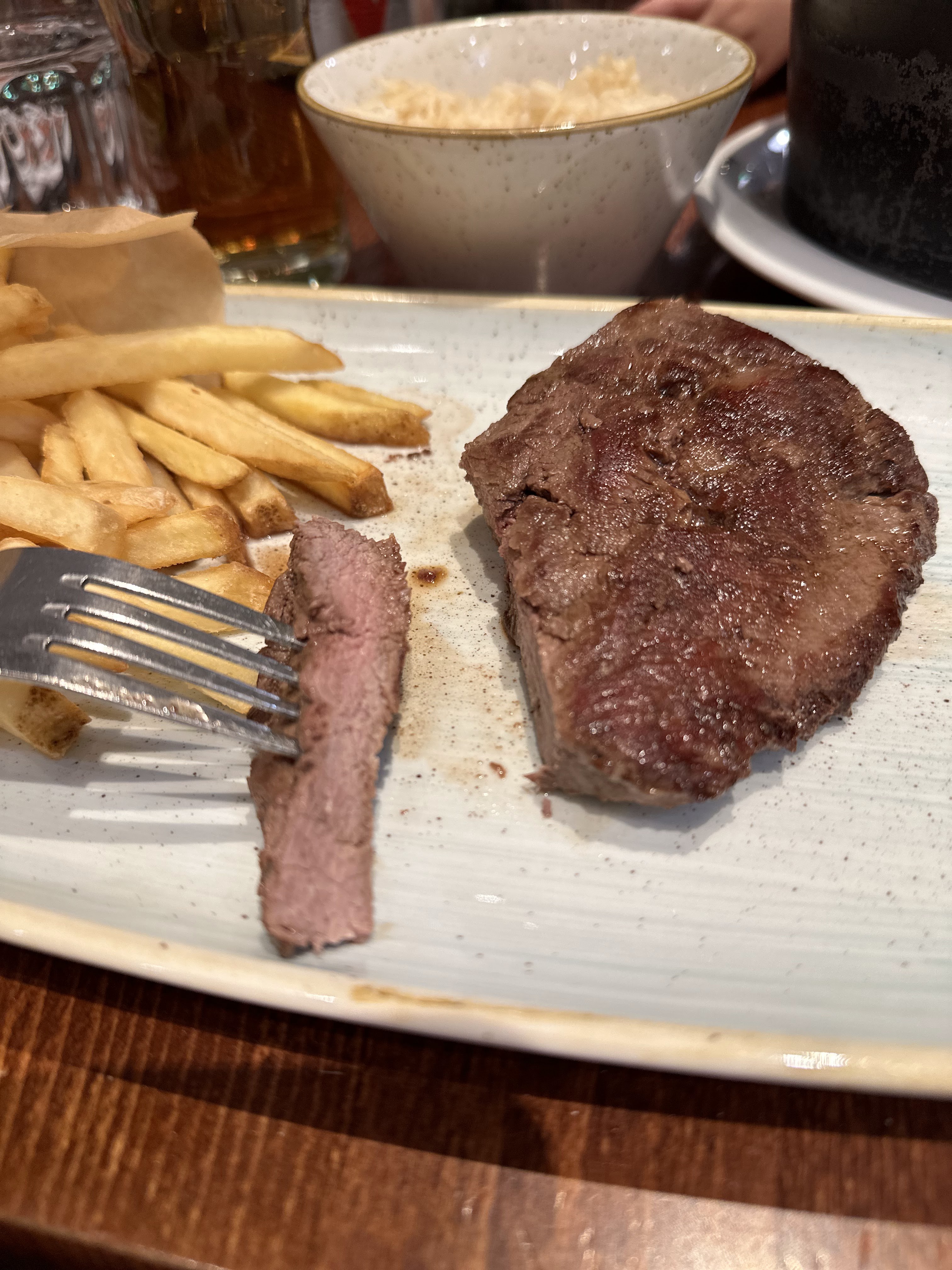 Même avec des remises si vous avez la carte Leon c est cher pour ce que l on mange, on demande un steak bleu il arrivee grillé, de la sauce a l échalote on a des lamelles mais pas de sauce, il manque la moitié de la carte , bref on ira manger ailleurs !!!